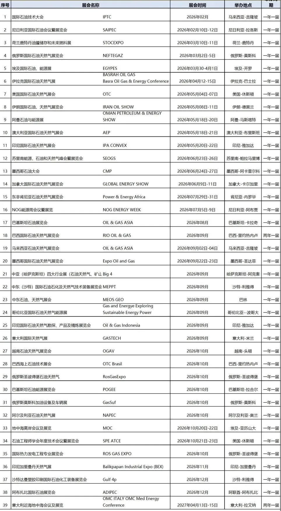中国参与情况:中国企业约20–30家参展,主要为油服、设备、管材、工程公司