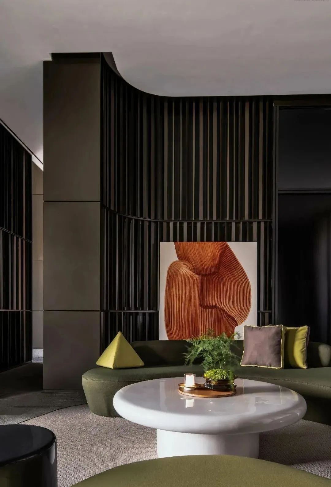 在当代都市审美风尚的流变中,关于设计语境的探索与表达,不仅附着于艺术或某种美学范式之上,更是在特定的场域下,与圈层坐标、个性态度乃至一座城市文化风尚紧密结合。在深圳这座自由开放的城市,设计师想要呈演的生活方式,是有着年轻前卫的都市情致,又充盈着日常的温度与品质。由此,在180㎡样板间中,布鲁盟设计落旨于“摩登森林”的创意构想,将对自然、艺术与美学的通感,延伸至与城市菁英内心相契的精神世界,令美好的生活情境于此悄然生长。