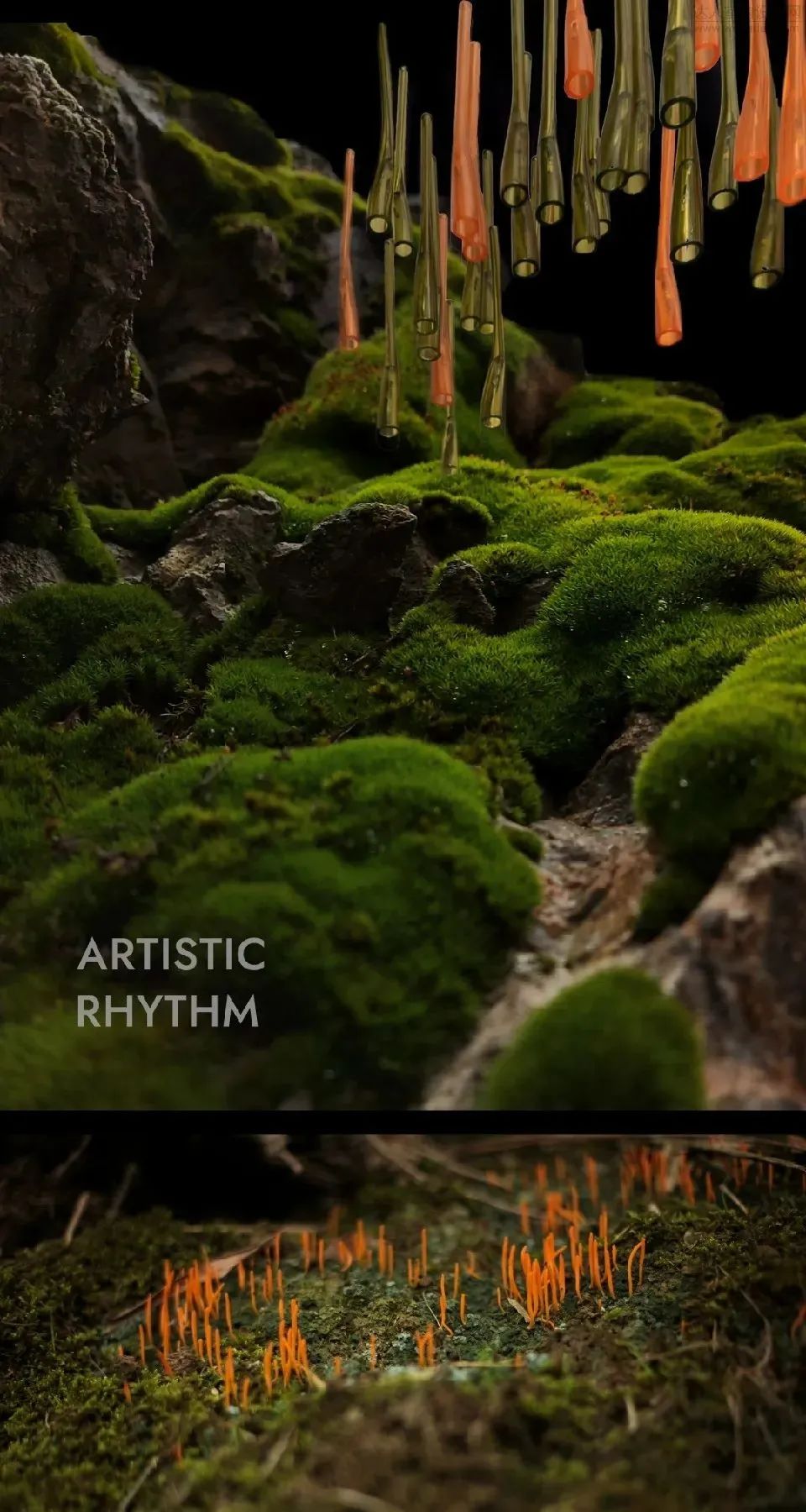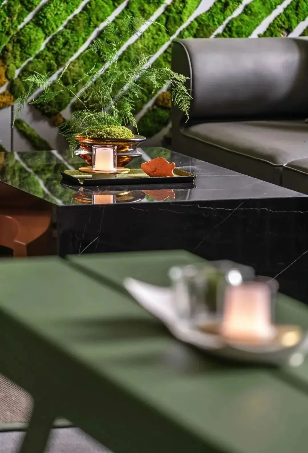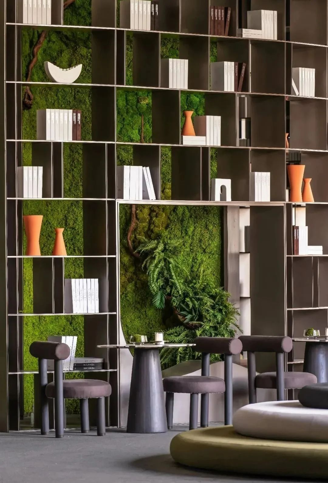 “我们在空间中融合丰盛繁茂的自然底蕴、当代先锋的人文艺术,凝练出空间独有的气质走向。”邦邦说道。自然的简练呈现出生命的本质,从自然主义的情境构建出发,取代传统的空间墙体,布鲁盟设计以大面积苔藓景观墙的铺叙,令人于游走、观赏、静处间,感知自然生长的无限生命力。