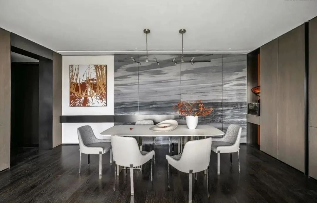精致的三餐四时,归于对仪式感的构设。延续浓郁的秋意情调,设计师选取柔和的米白,调和着空间的韵律感,不经意间延伸出源于日常的生活趣味。
