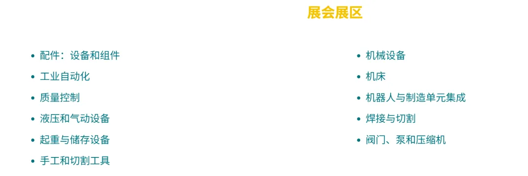 ?工业机械设备:通用机械、加工设备、流体设备、机床工具?自动化与机器人:工业自动化、智能生产线、传动控制、机器人技术?五金及金属加工:金属成型、焊接切割、精密零部件、模具材料?橡塑 & 包装设备:塑料机械、包装自动化、新材料及辅助设备?新能源工业配套、工业耗材、检测仪器、工业安全防护?工业数字化、智能制造解决方案、工业软件及配套服务