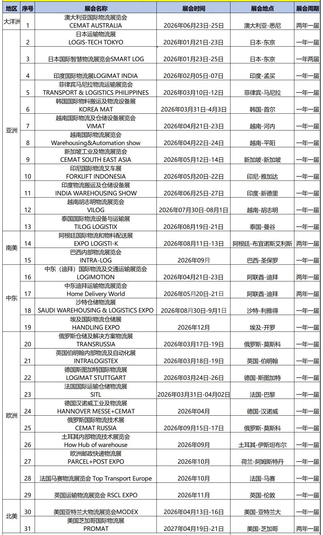2026年第16届俄罗斯国际仓储设备及物流展览会(CEMAT Russia ),由德国汉诺威展览公司主办,将于9月15-17日在莫斯科Crocus Expo克洛库斯国际会展中心举办。作为俄罗斯及欧亚大陆最权威、影响力最大的物流技术与仓储设备专业展,展会聚焦内部物流全链条,覆盖仓储自动化、物料搬运、物流数字化、智能包装等核心领域。展会依托莫斯科区域枢纽优势,服务俄罗斯、独联体及东欧市场物流升级需求,为全球供应商与本地制造商、零售商、物流服务商搭建精准对接平台,是企业开拓俄语区市场、展示智能物流整体解决方案的首选展会。