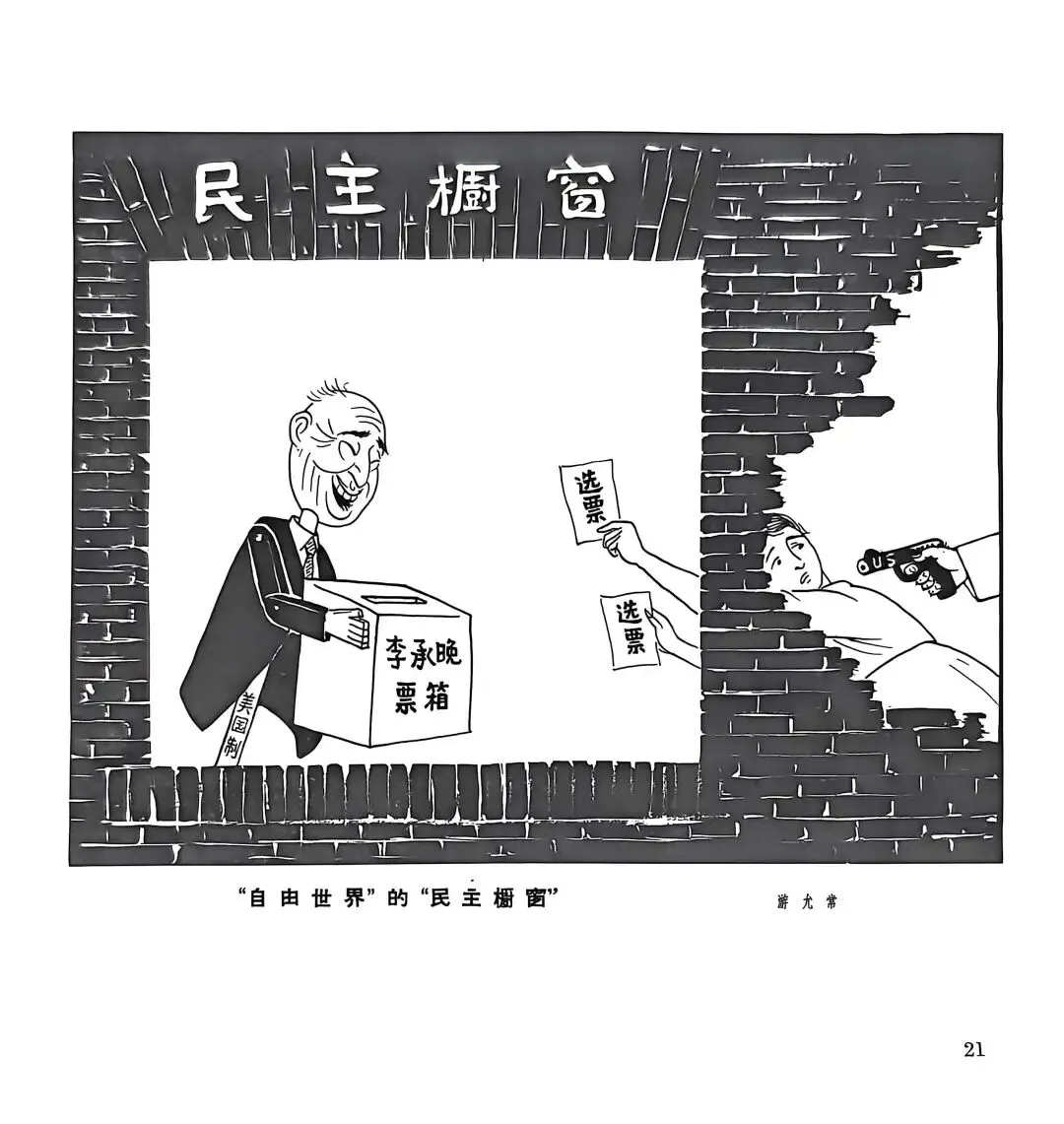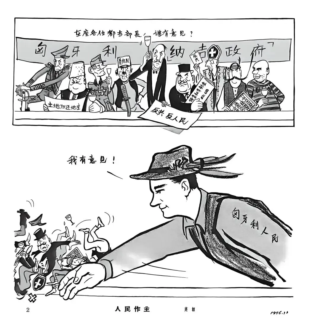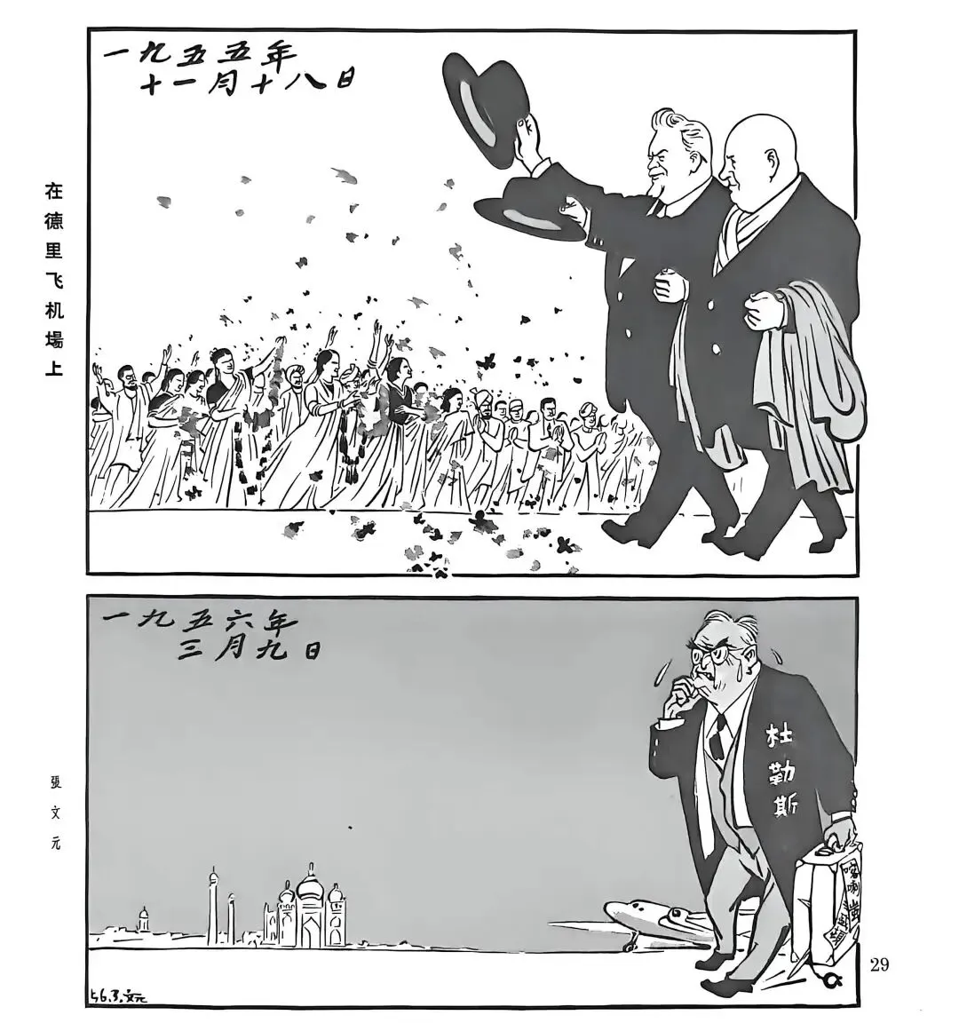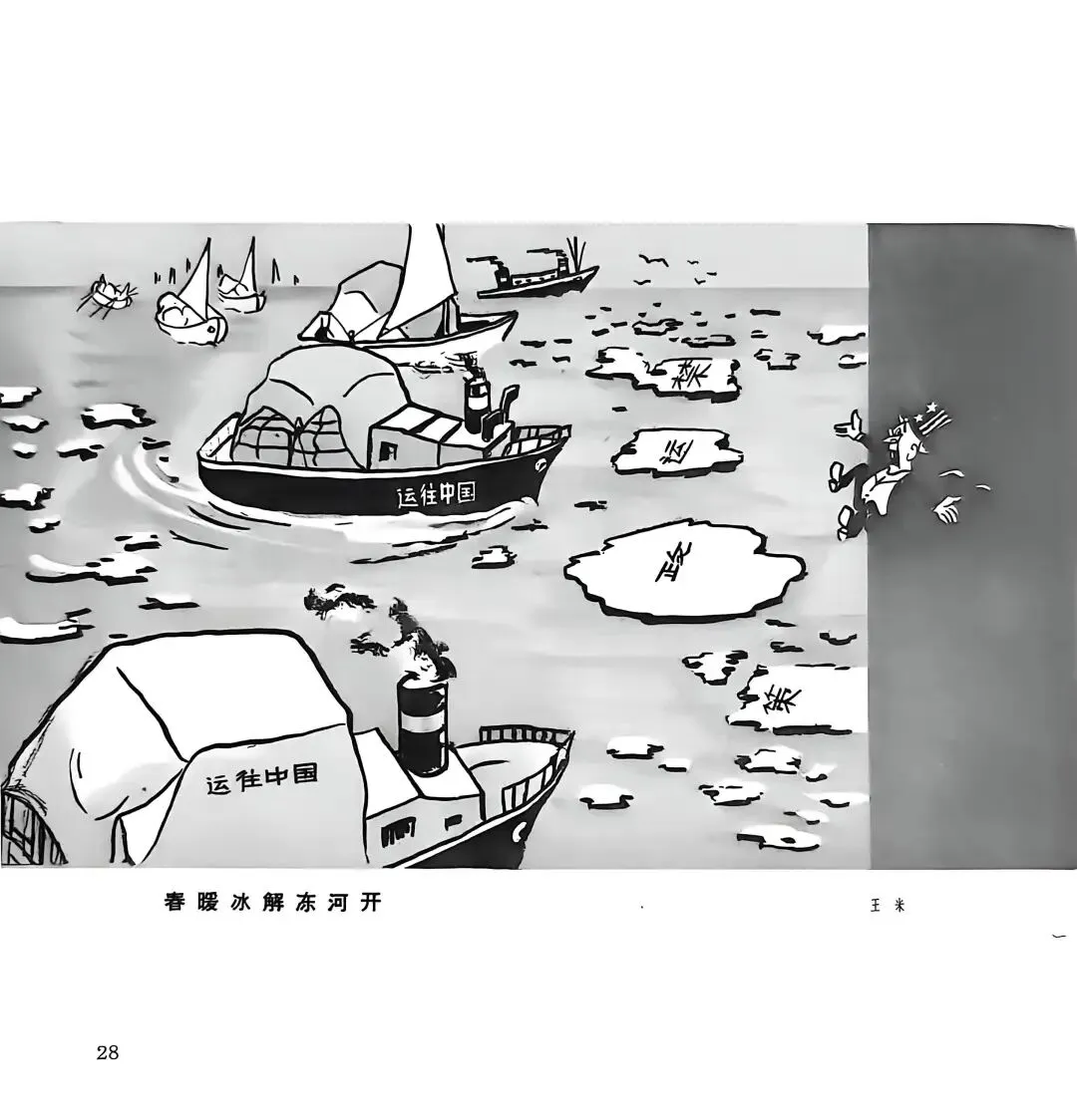 (当然漫画的其他形式也將大大發展,如歌颂新生活的,幽默诙谐的漫画等)。因为任何时候,在人类社会中,都有先进和落后之分,正确和错之分,新生的正在成長的和腐朽的日趋消亡的事物之分,进步的漫画家也就永远不会“失业”,他站在先进的立場上,永远有值得讽刺批评的对象,以运用这个武器帮助推动社会更向前进。