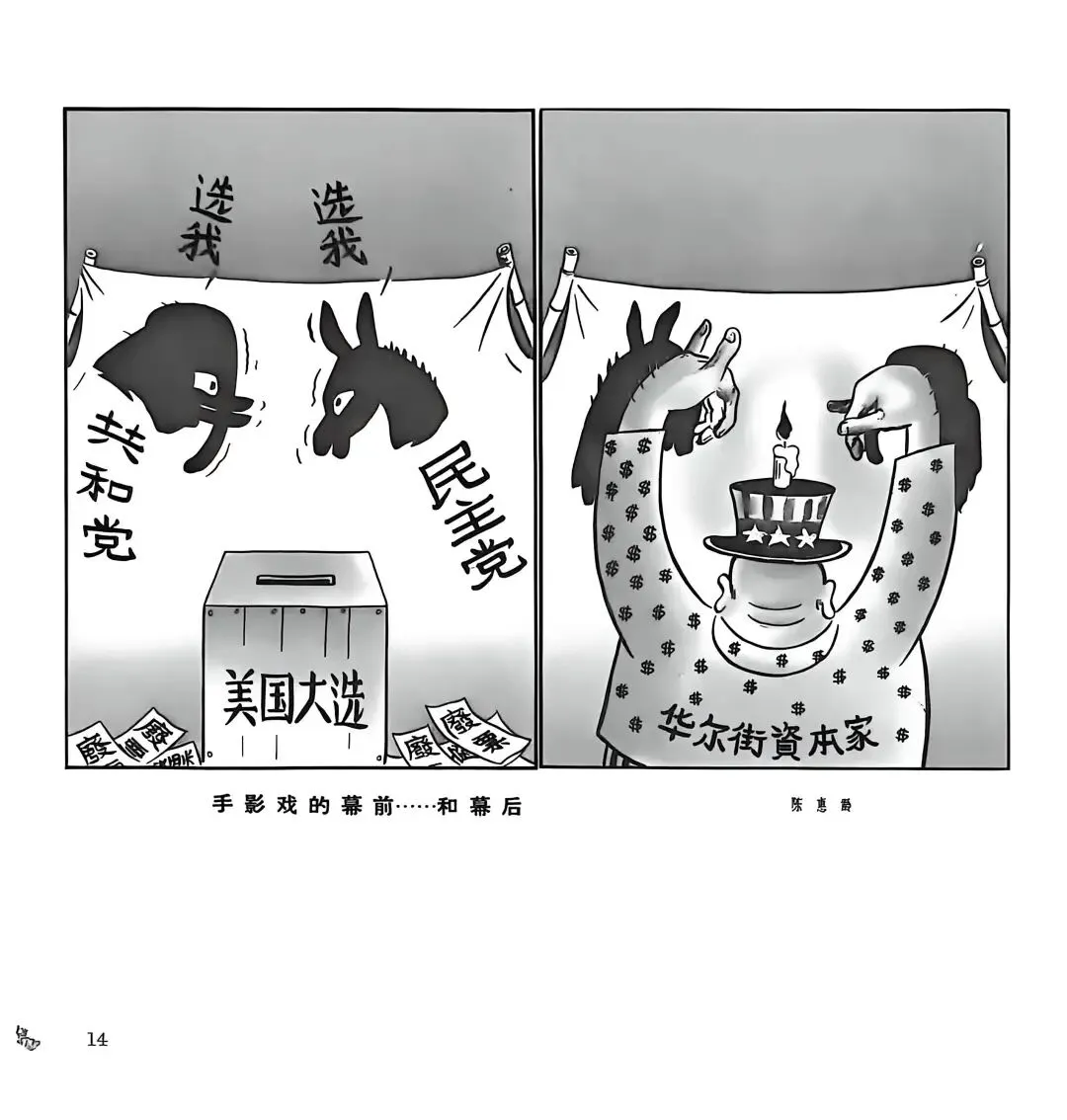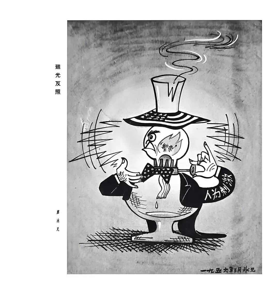 在各姊妹画种中,漫画是政治倾向性最鲜明的画种,漫画家的政治立場也是鲜明的,全国进步漫画家进一步团結起来,用漫画这个武器更好地更有效地为国、为社会主义的更大胜利而战斗吧!