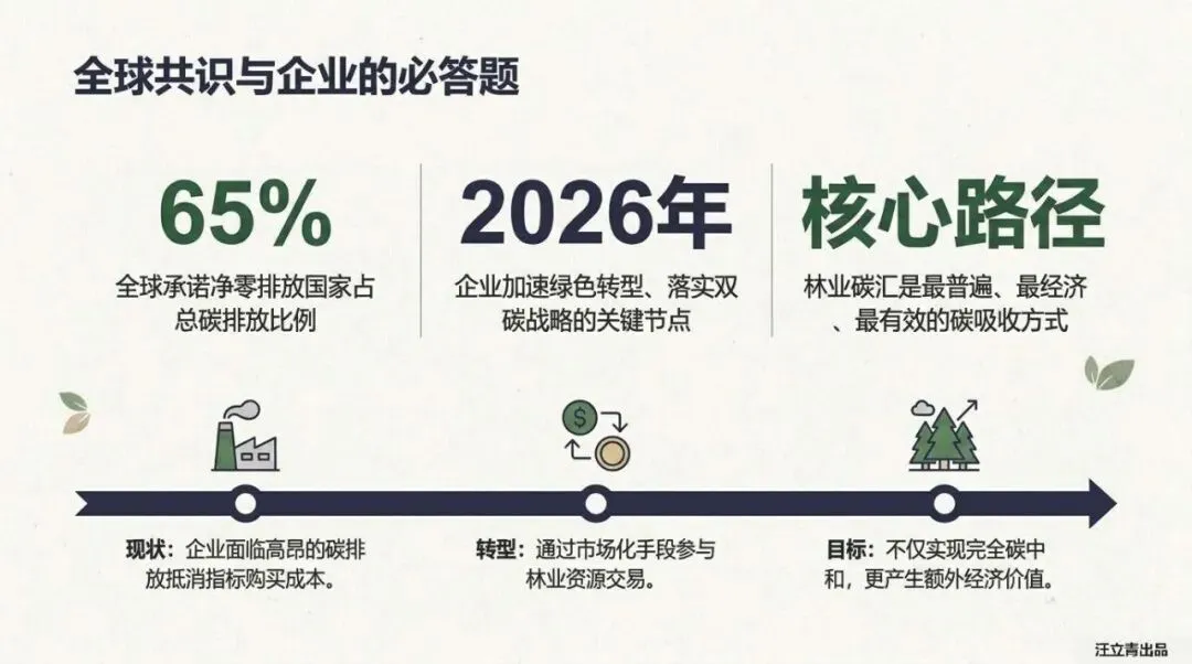 全球65%的国家都已承诺净零排放,这意味着2026年将成为企业绿色转型的“生死线”。对很多高排碳企业来说,这不只是道德题,而是关乎存亡的必答题。今天给大家介绍一个非常创新的技术路径——林业碳汇。它不是简单的公益种树,而是通过科技手段把森林吸收二氧化碳的能力“资产化”,让大自然的呼吸变成可以买卖的真金白银。
