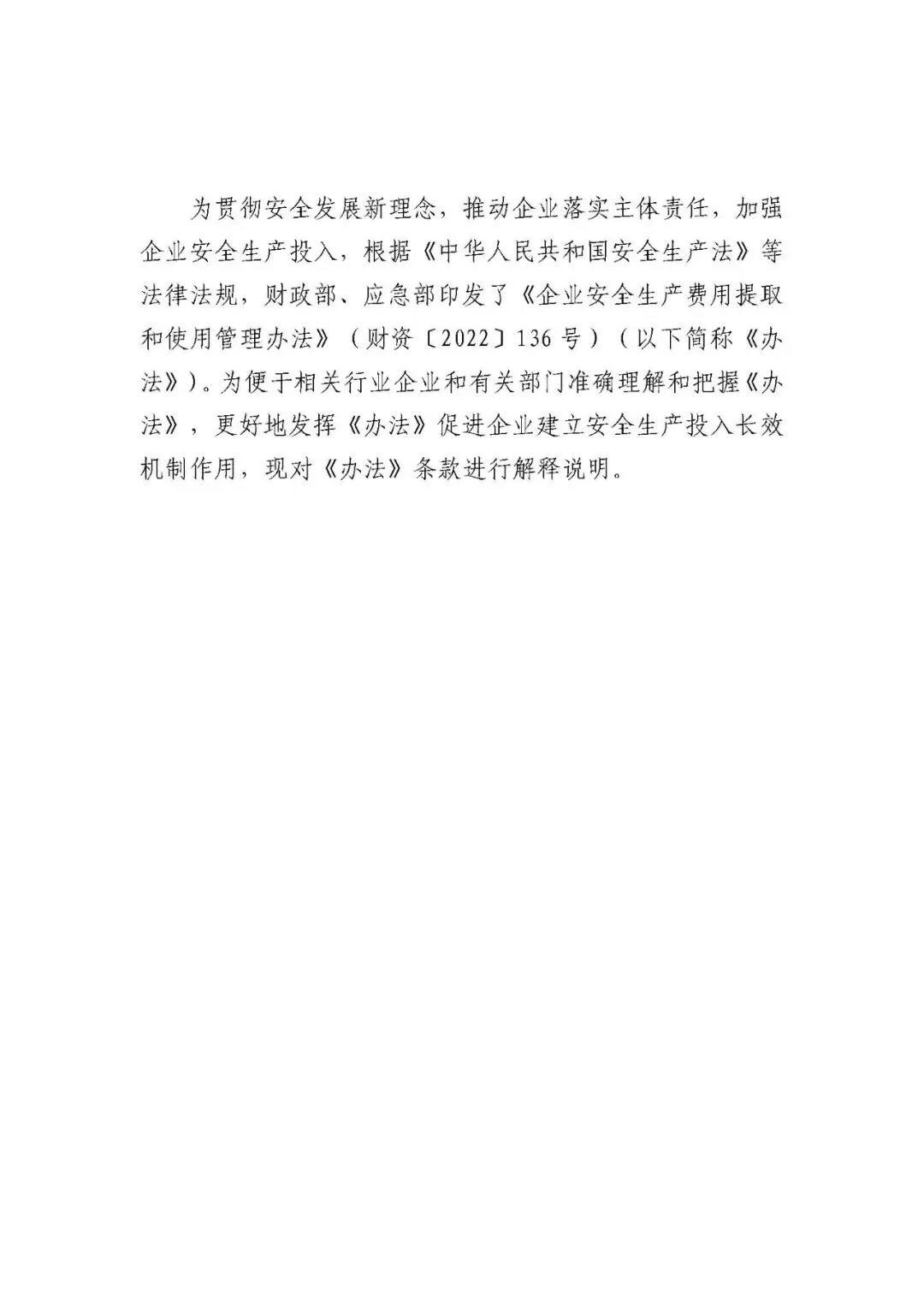 2022年应急管理部与财政部联合印发了《企业安全生产费用提取和使用管理办法》(财资〔2022〕136号),随后应急管理部又印发了《<企业安全生产费用提取和使用管理办法>解读》,这其中就明确对各行业领域安全生产费用支出的负面清单做出了详细规定。但从现实管理情况来看,仍有不少企业与安全管理人员不熟悉、不清楚该文件。