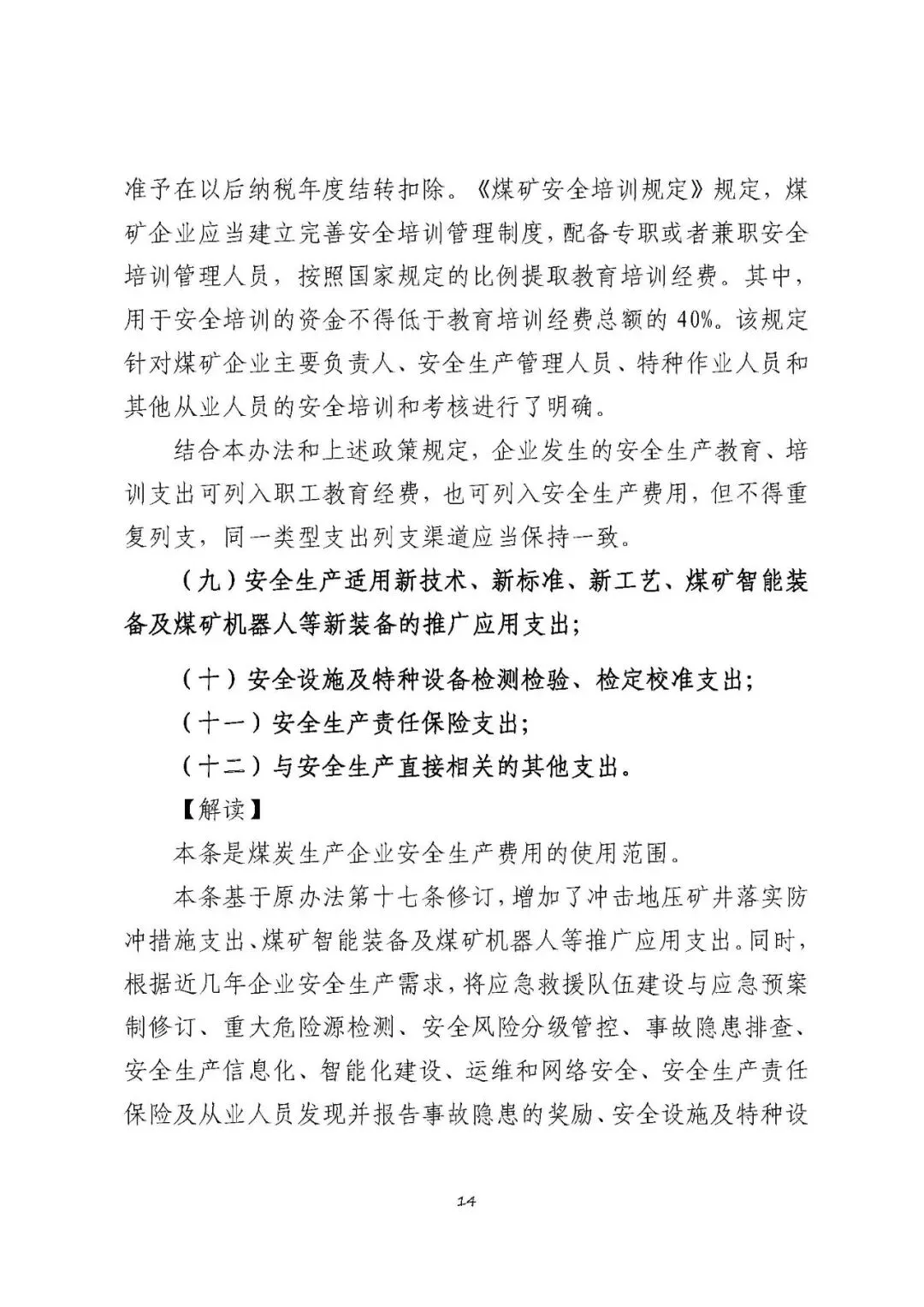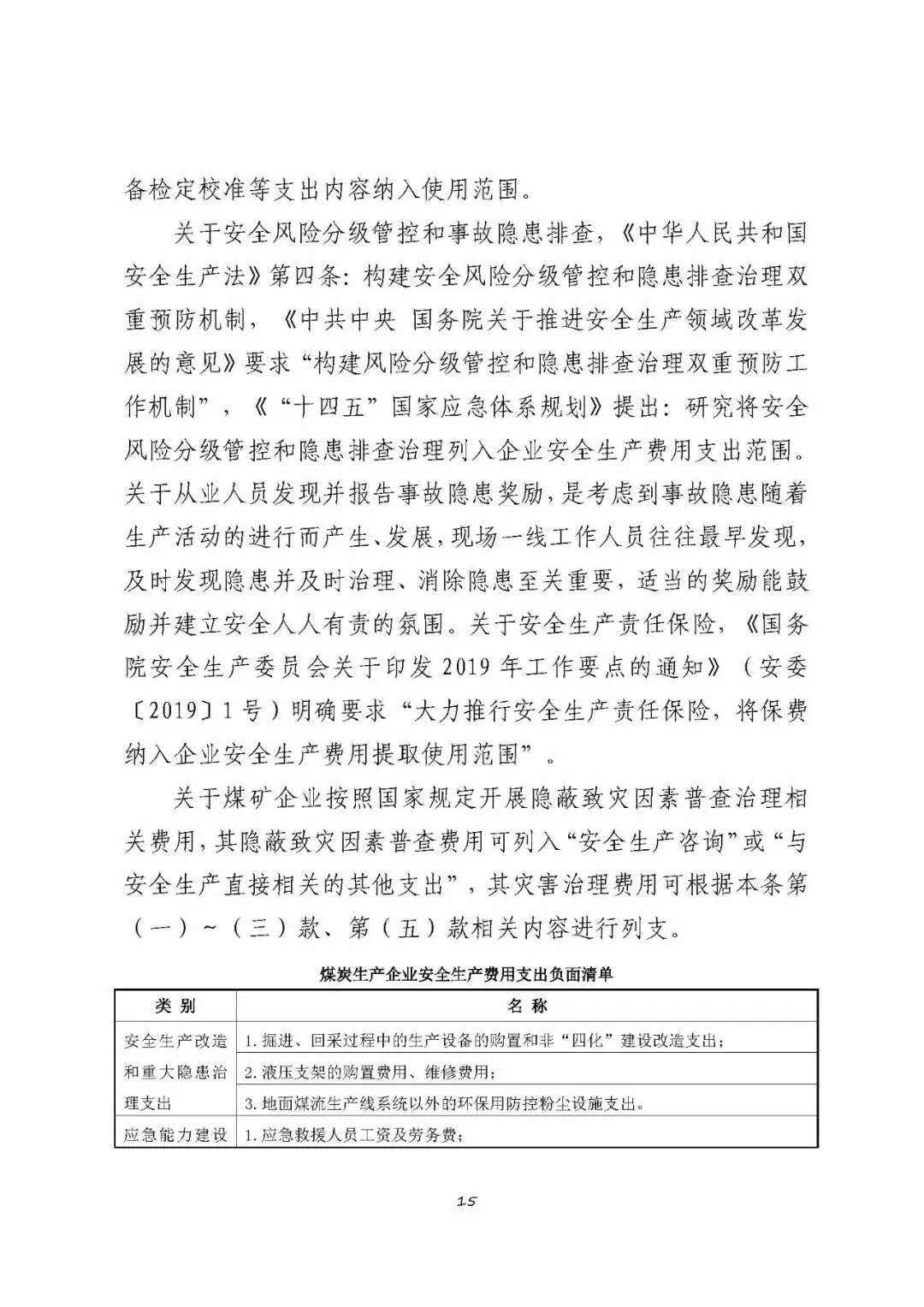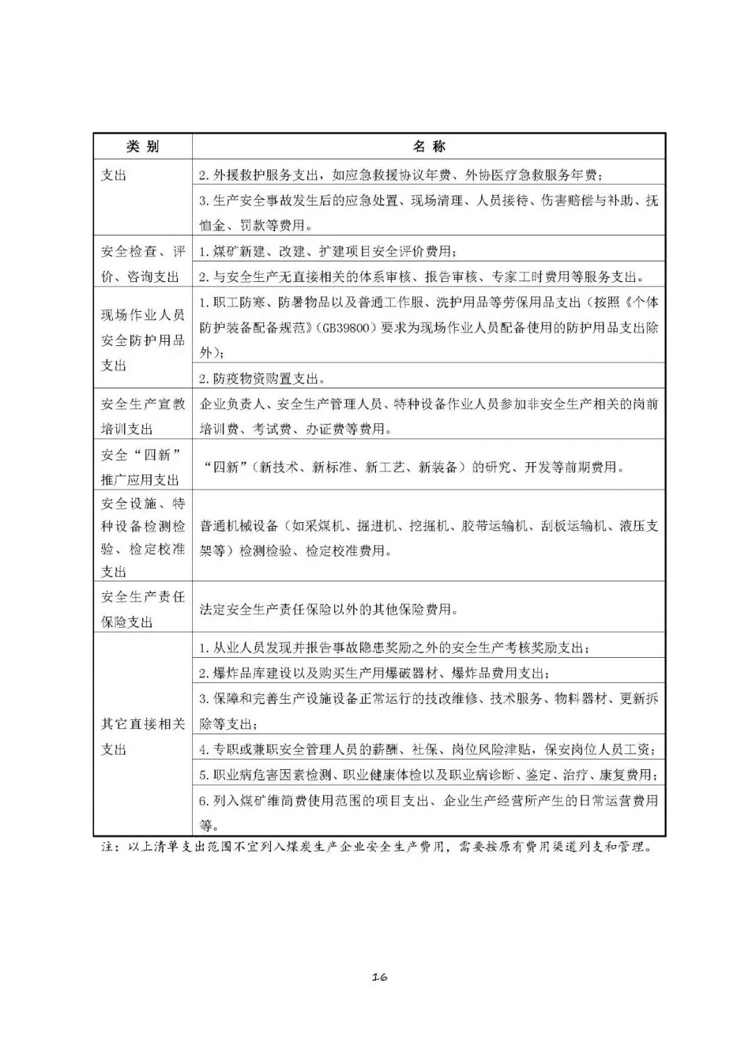 注:以上清单支出范围不宜列入煤炭生产企业安全生产费用,需要按原有费用渠道列支和管理。