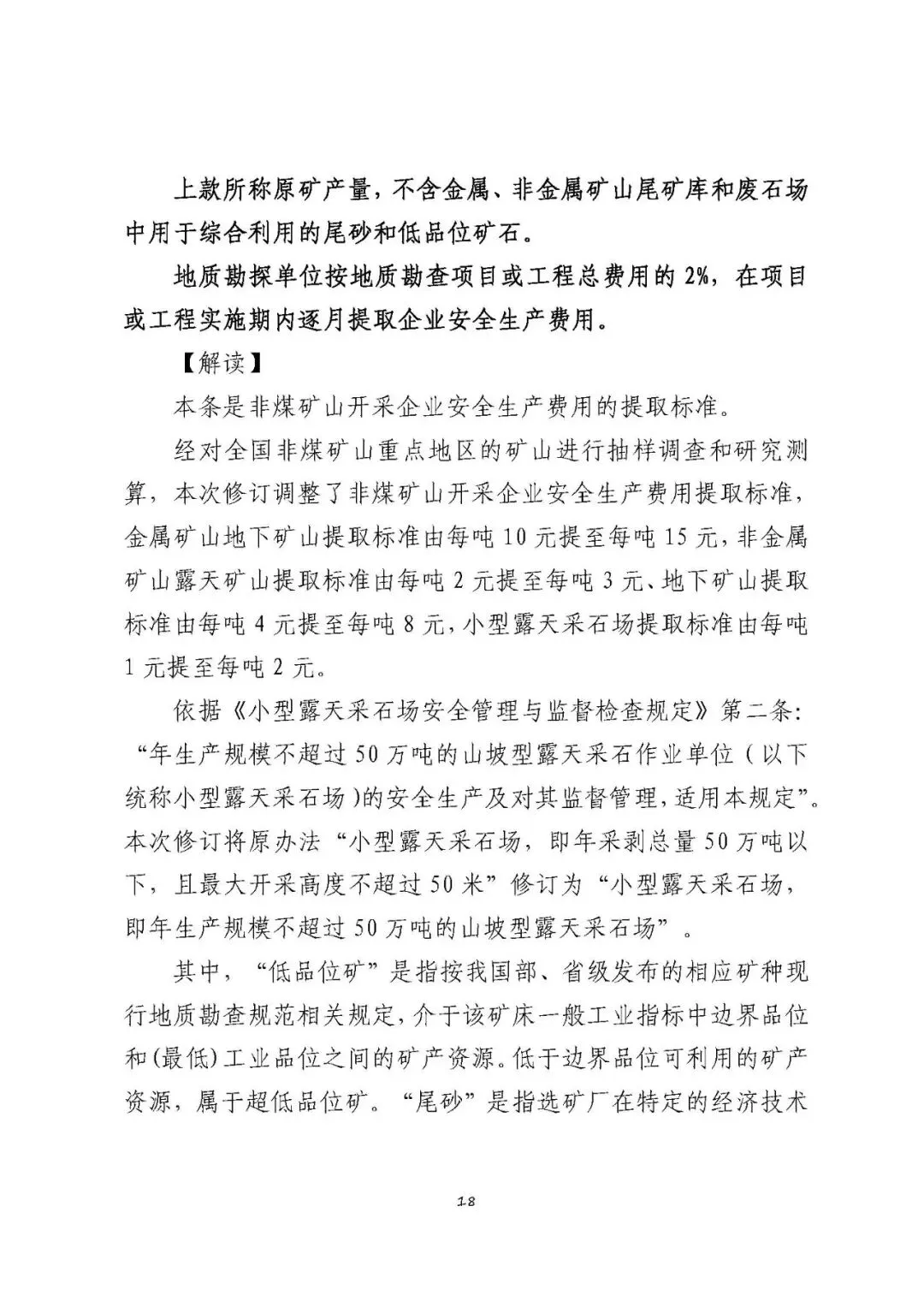 安全生产改造和重大隐患治理支出 | 1.掘进、回采过程中的生产设备的购置和非“四化”建设改造支出; |