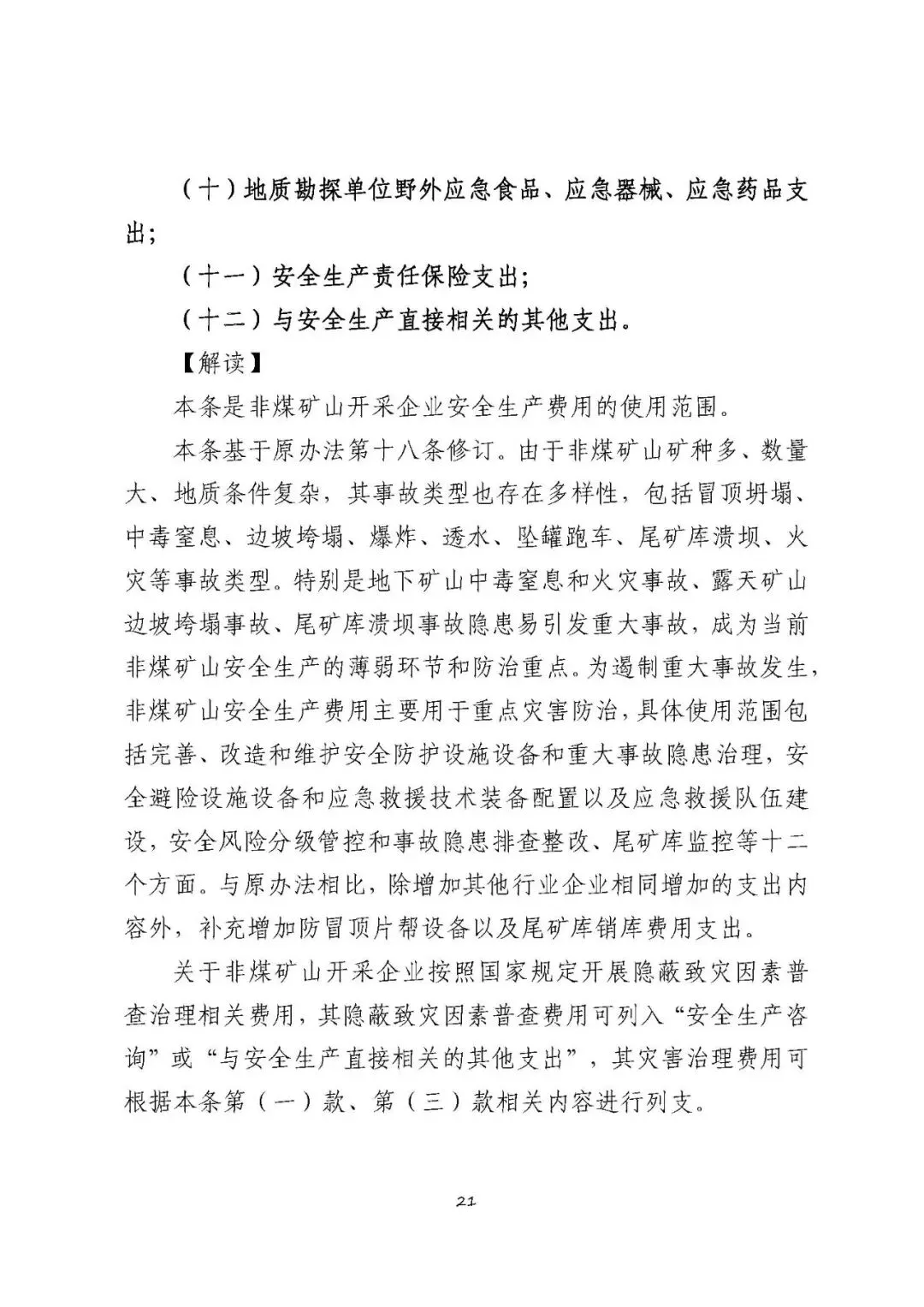 注:以上清单支出范围不宜列入非煤矿山开采企业安全生产费用,需要按原有费用渠道列支和管理。