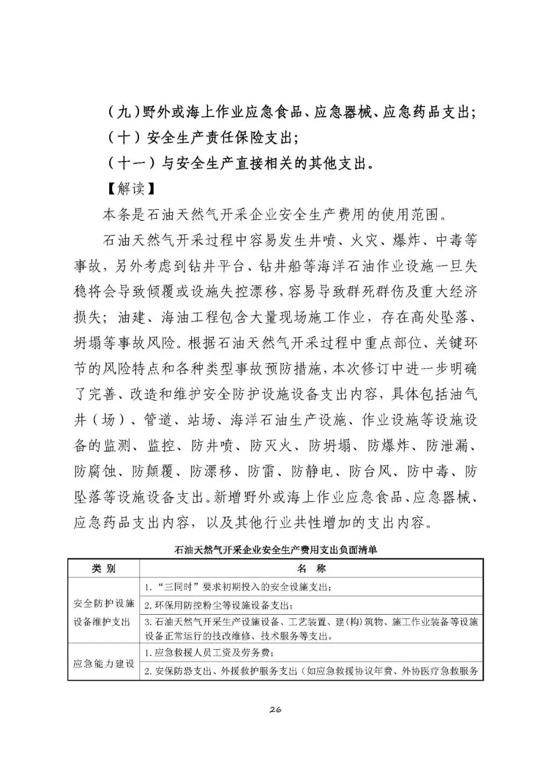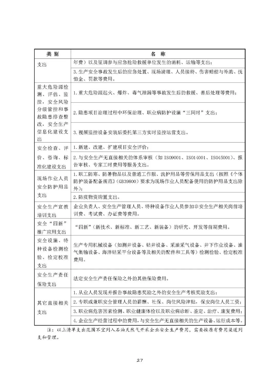 注:以上清单支出范围不宜列入石油天然气开采企业安全生产费用,需要按原有费用渠道列支和管理。