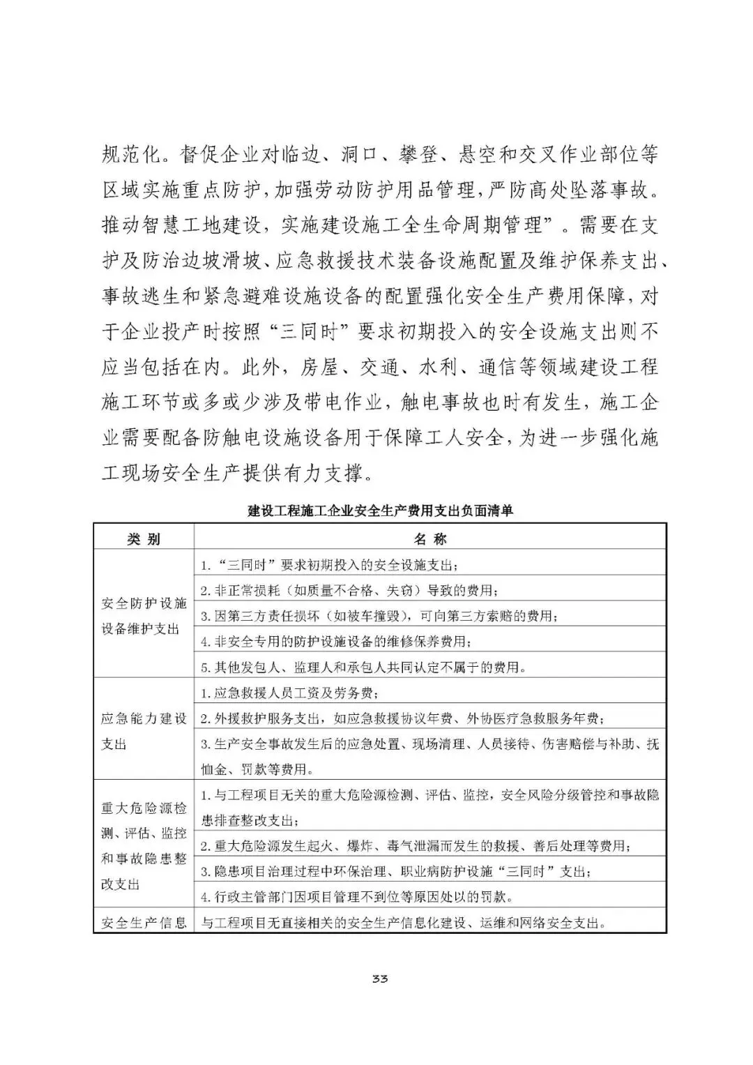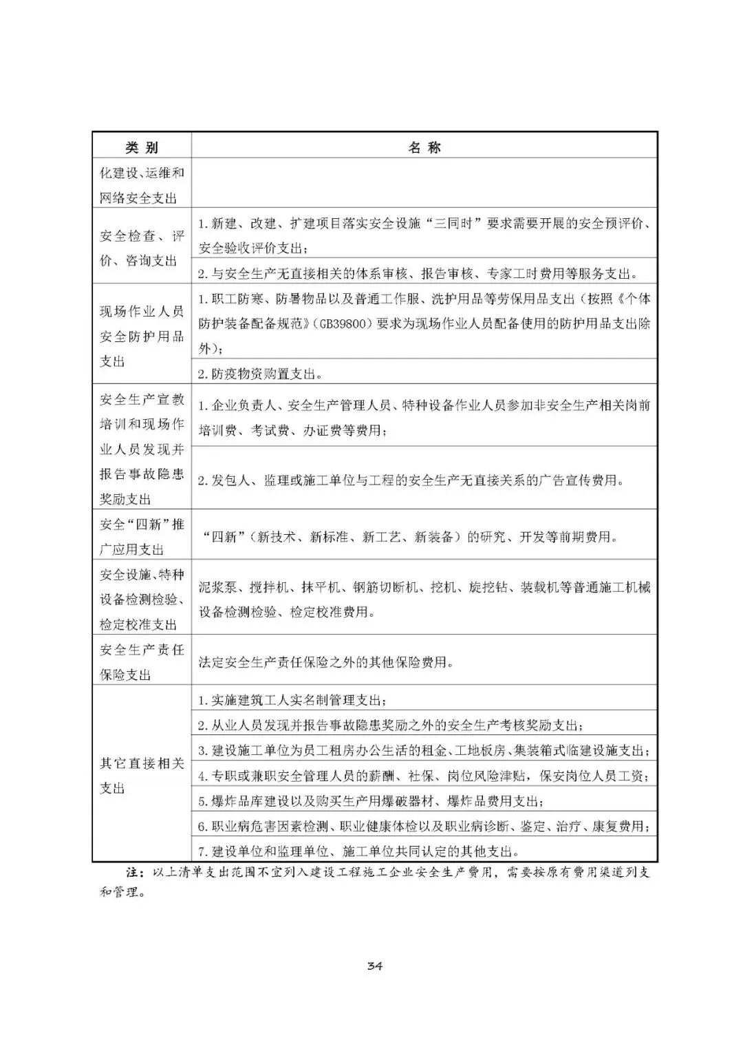 安全生产信息化建设、运维和网络安全支出 | 与工程项目无直接相关的安全生产信息化建设、运维和网络安全支出。 |
