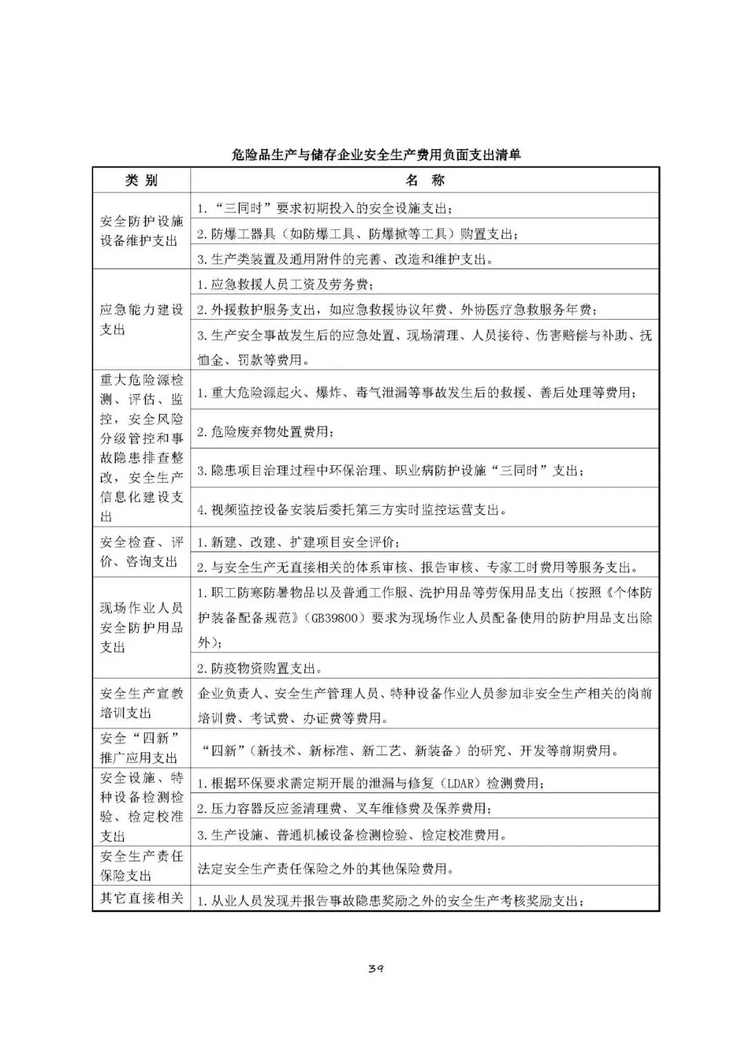 注:以上清单支出范围不宜列入危险品生产与储存企业安全生产费用,需要按原有费用渠道列支和管理。