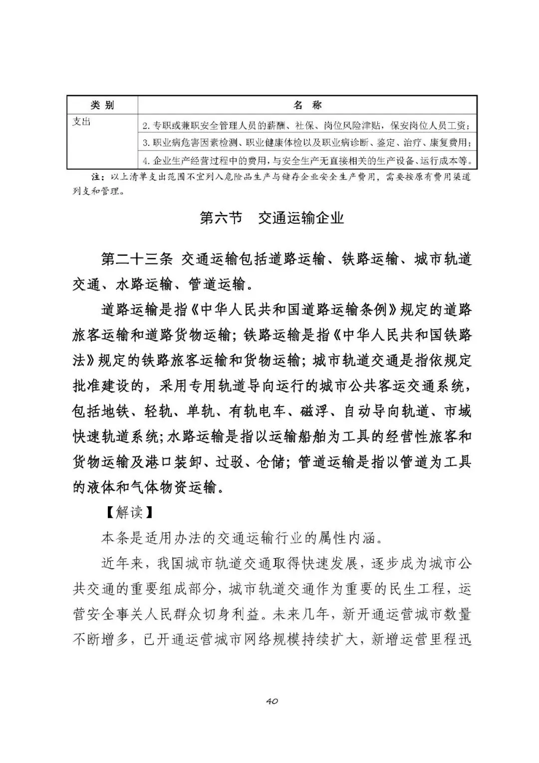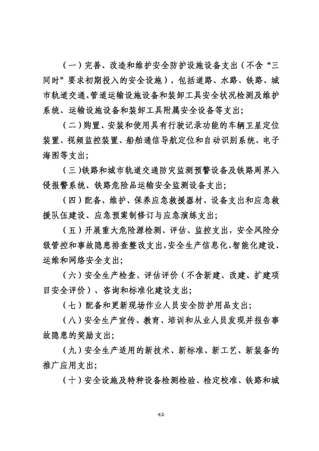 注:以上清单支出范围不宜列入交通运输企业安全生产费用,需要按原有费用渠道列支和管理。