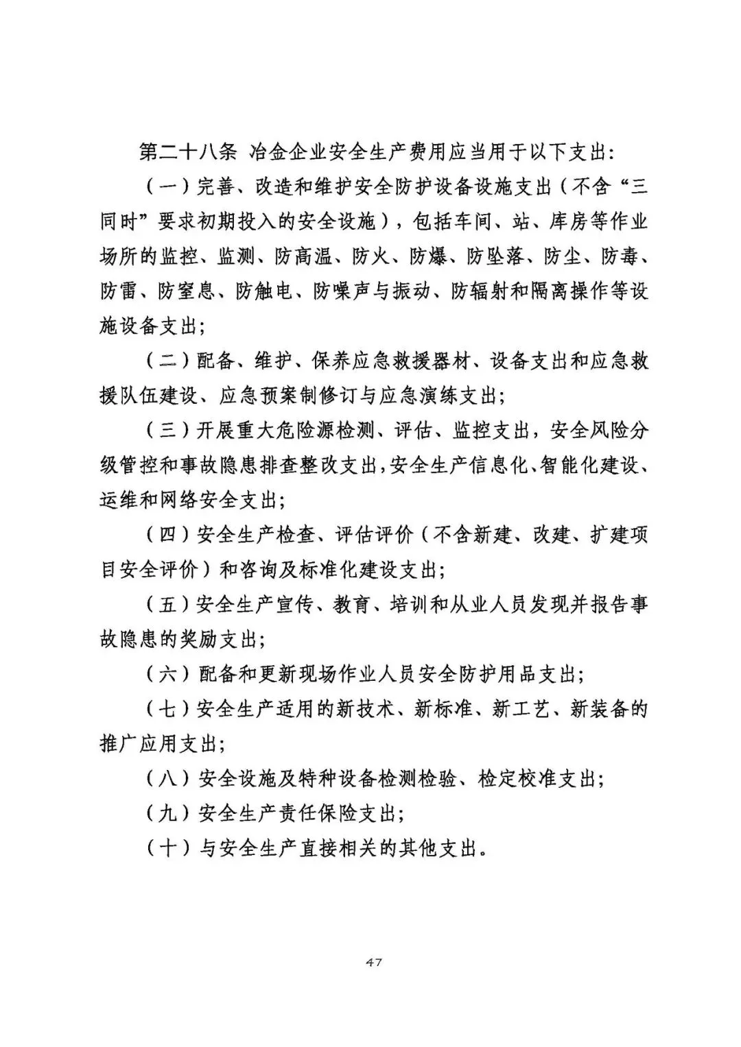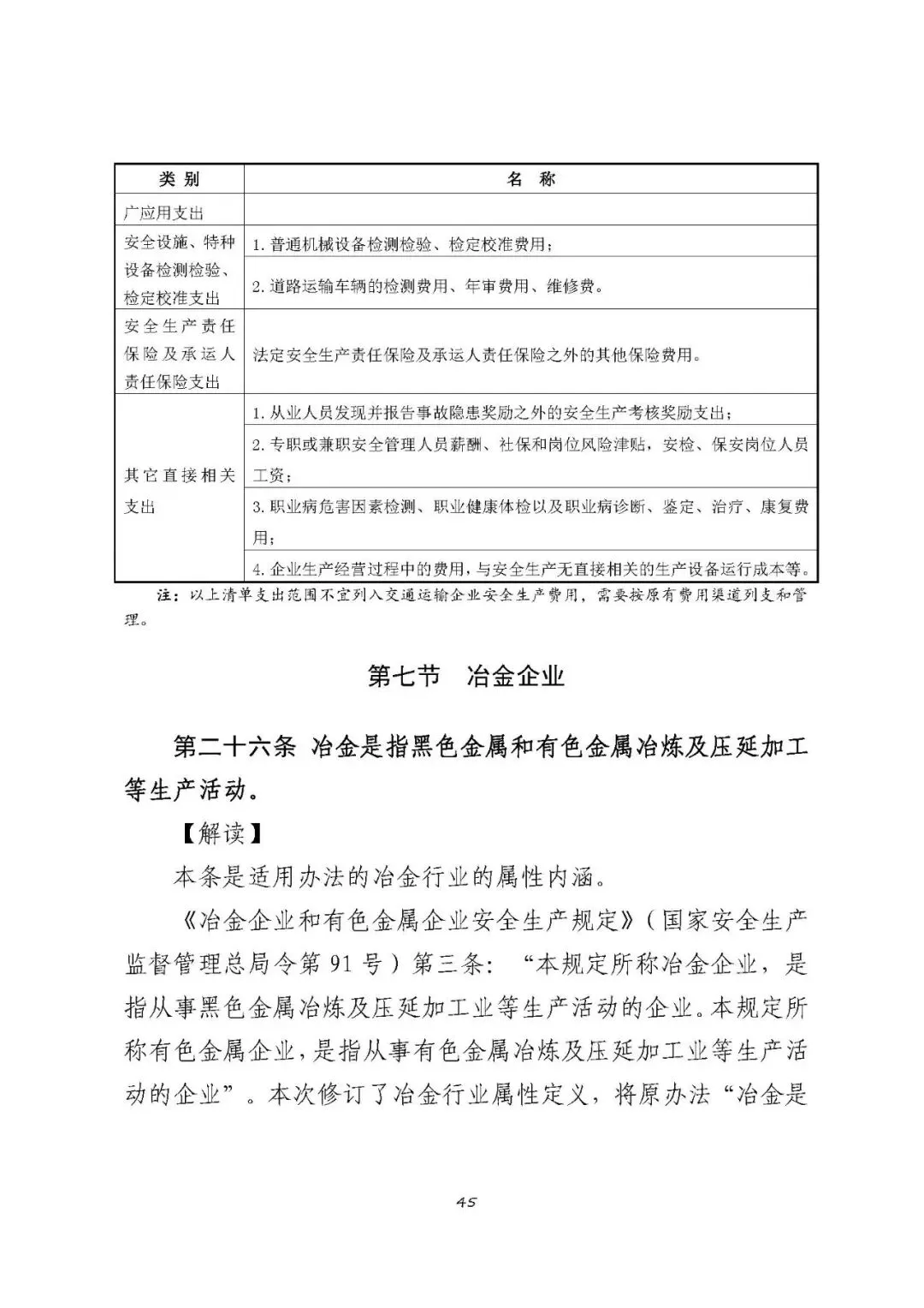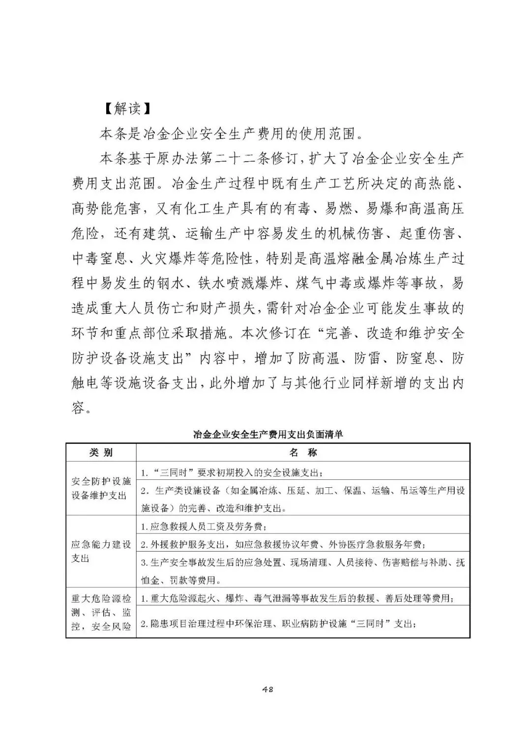 注:以上清单支出范围不宜列入冶金企业安全生产费用,需要按原有费用渠道列支和管理。