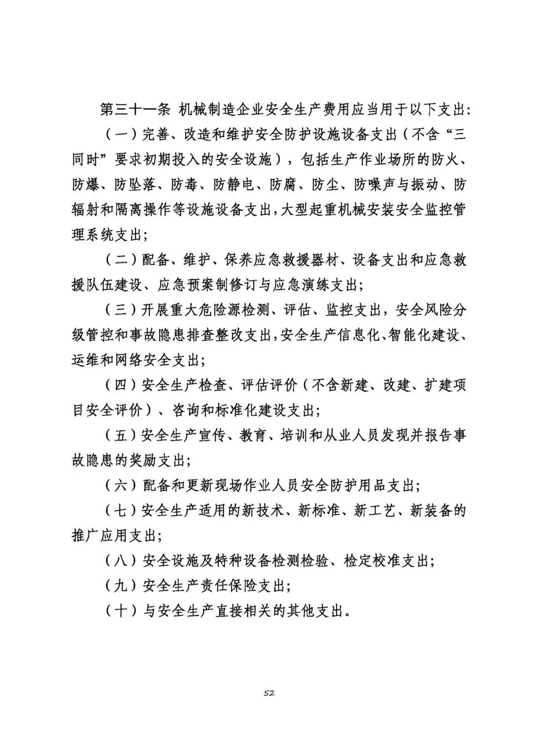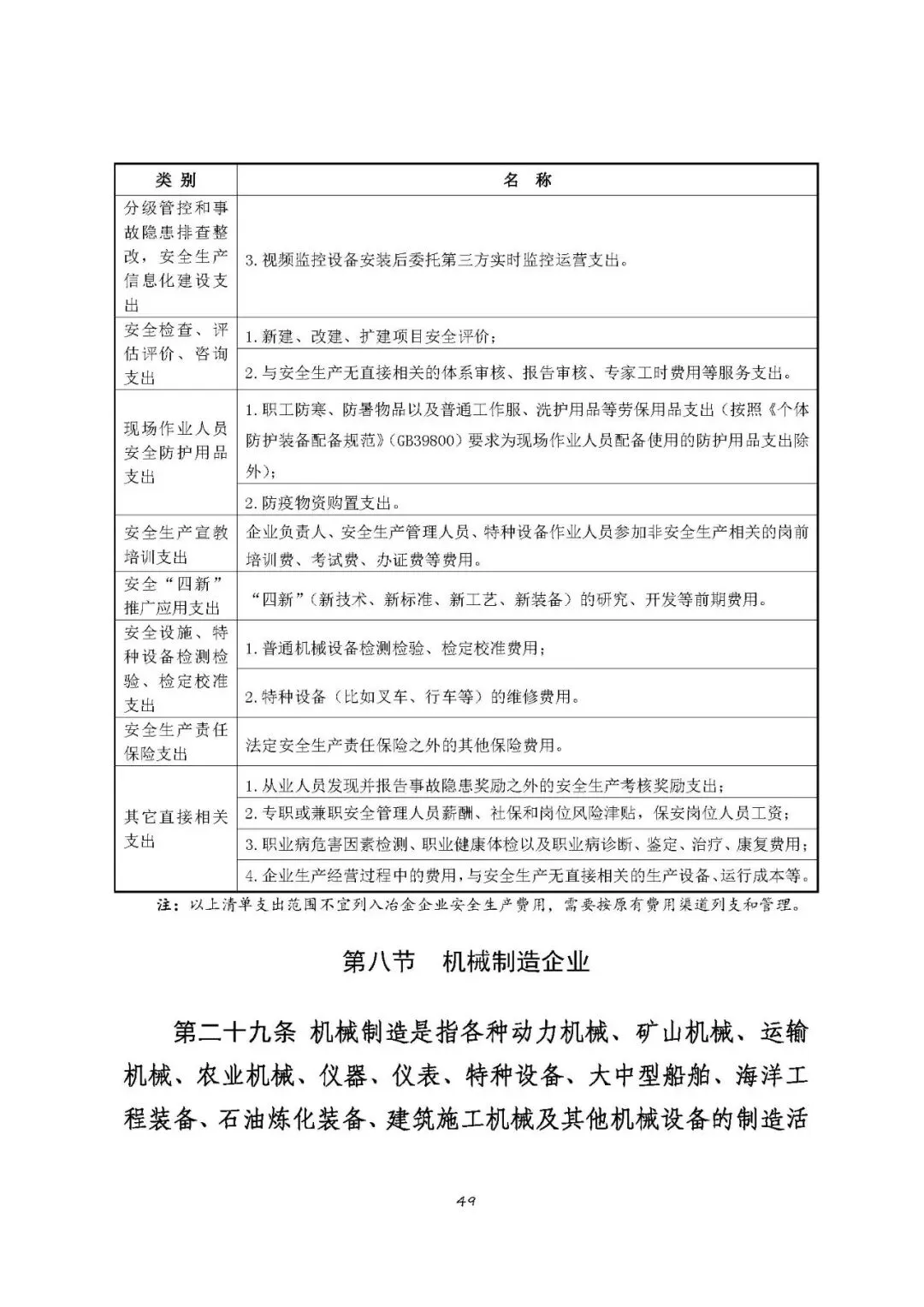 注:以上清单支出范围不宜列入机械制造企业安全生产费用,需要按原有费用渠道列支和管理。