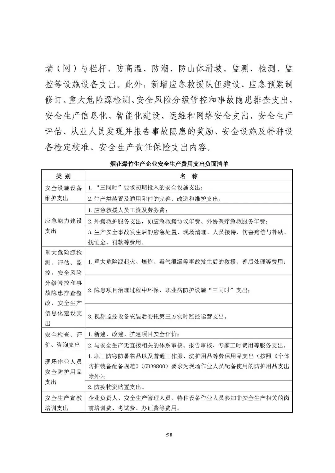 注:以上清单支出范围不宜列入烟花爆竹生产企业安全生产费用,需要按原有费用渠道列支和管理。