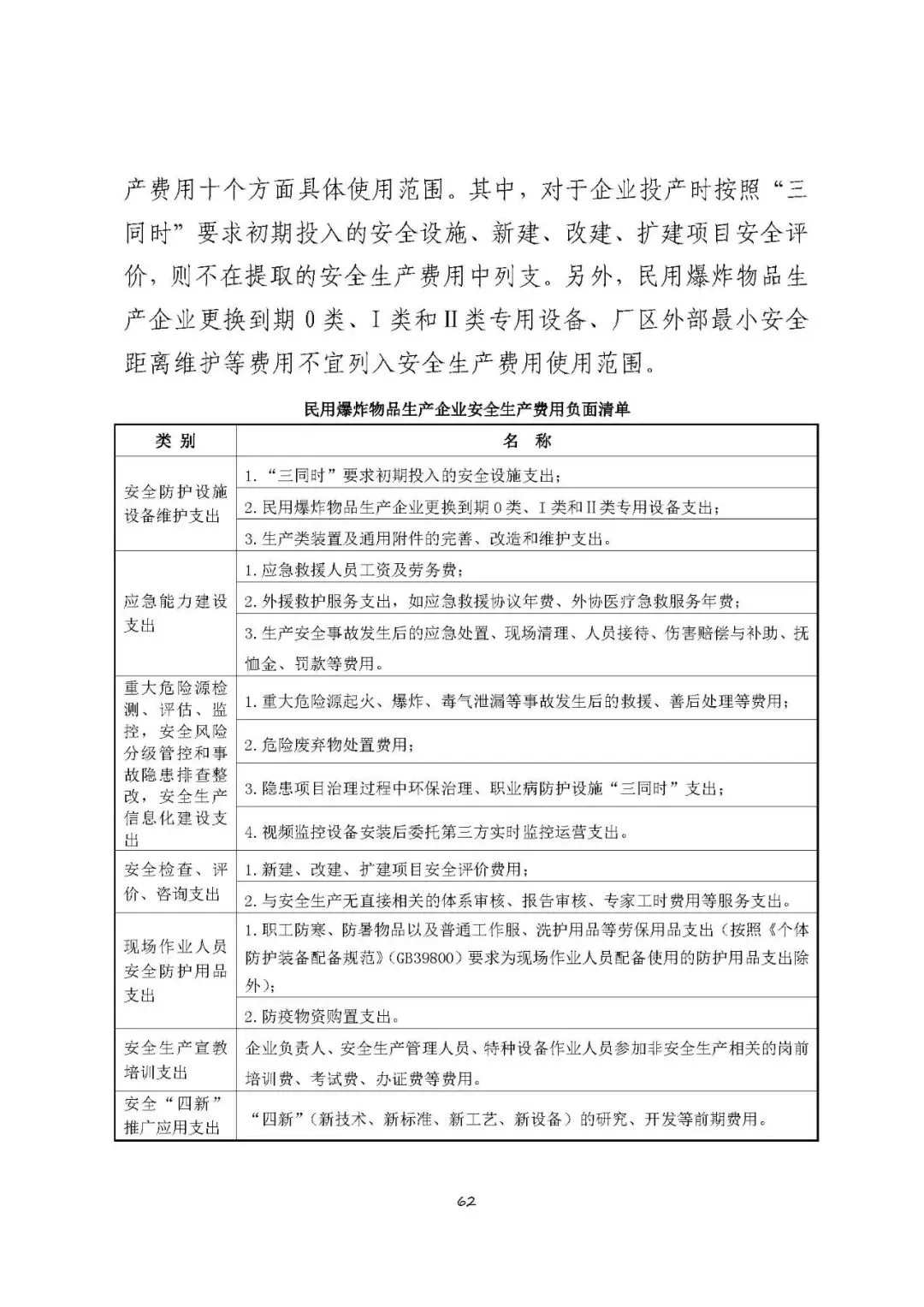 注:以上清单支出范围不宜列入民用爆炸物品生产企业安全生产费用,需要按原有费用渠道列支和管理。