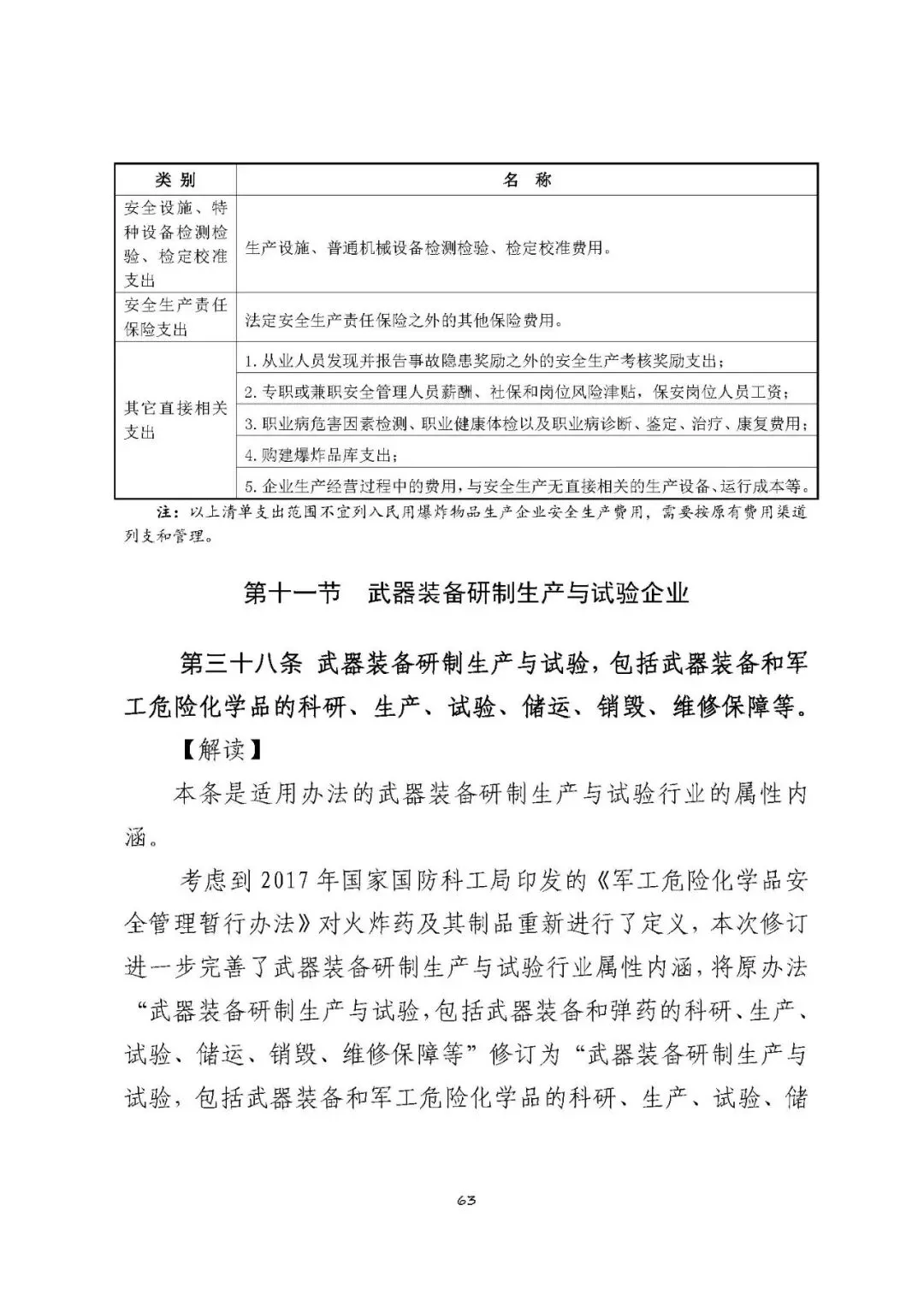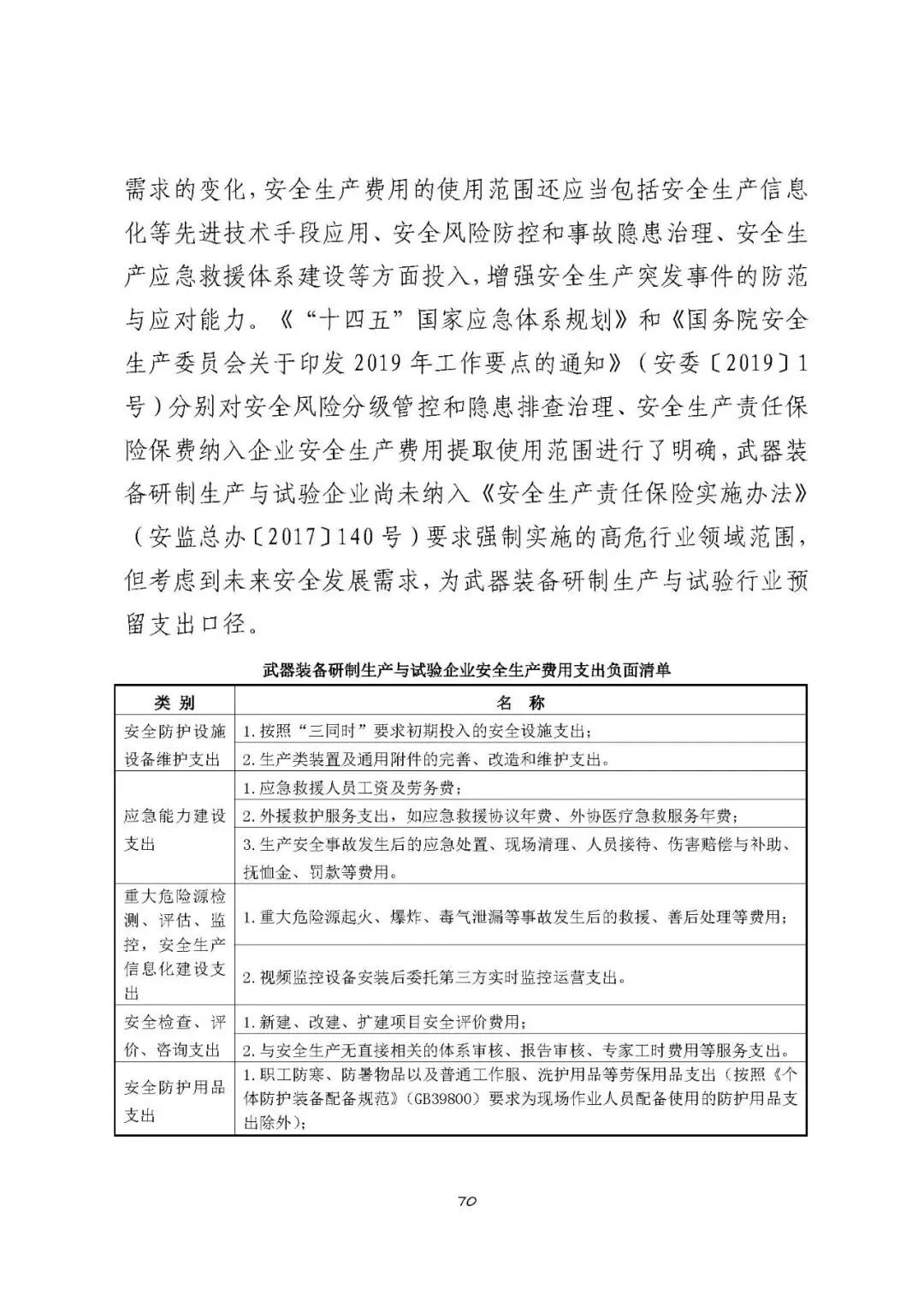 注:以上清单支出范围不宜列入武器装备研制生产与试验企业安全生产费用,需要按原有费用渠道列支和管理。