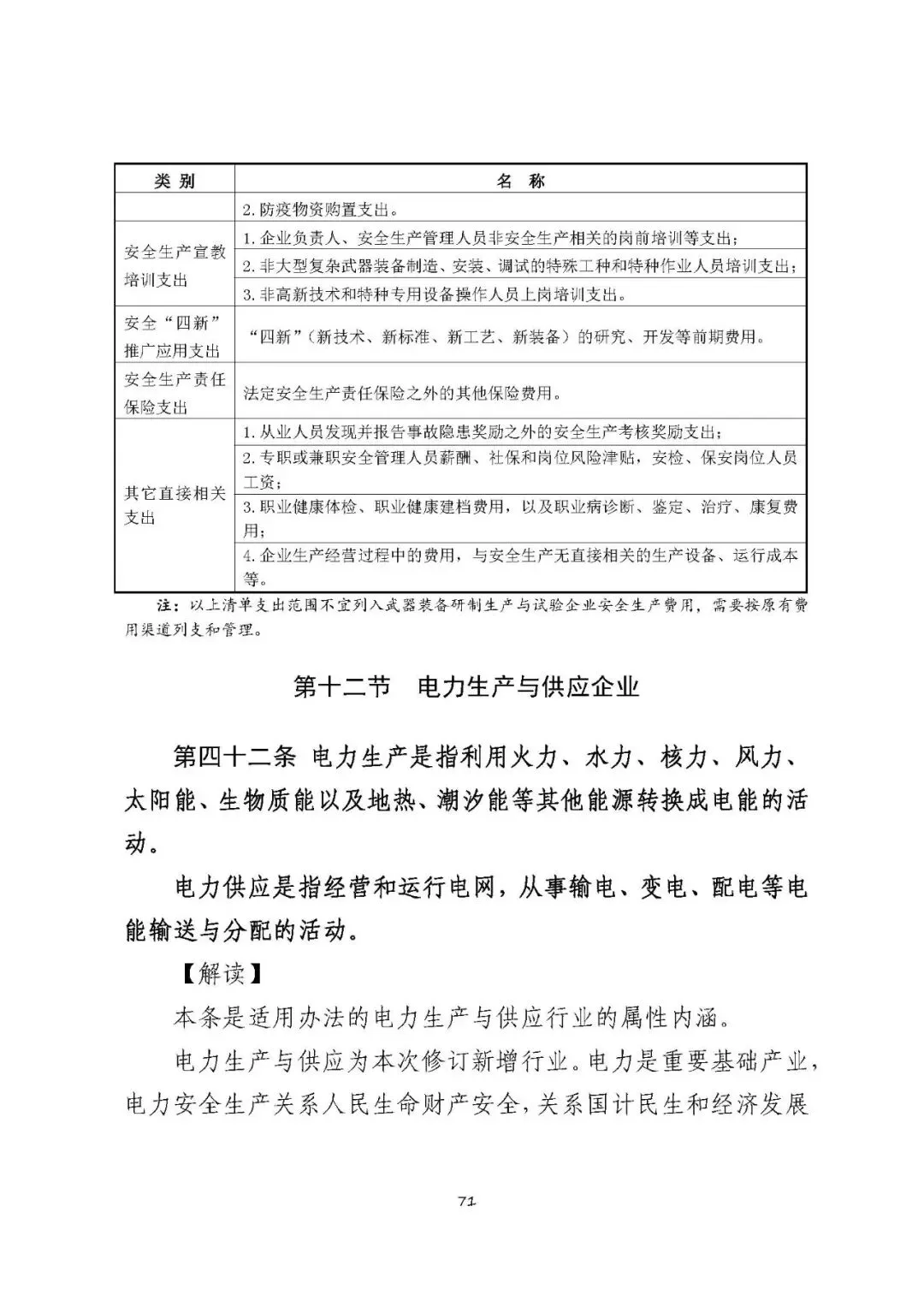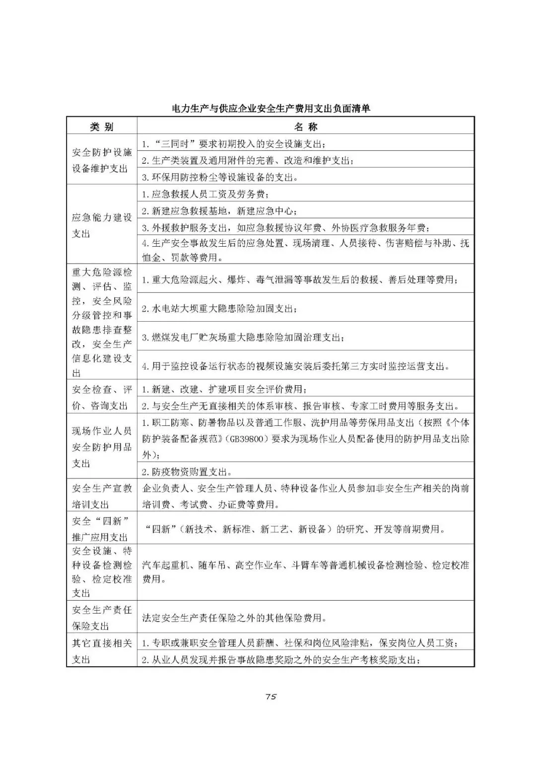 注:以上清单支出范围不应列入电力生产与供应企业安全生产费用,需要按原有费用渠道列支和管理。
