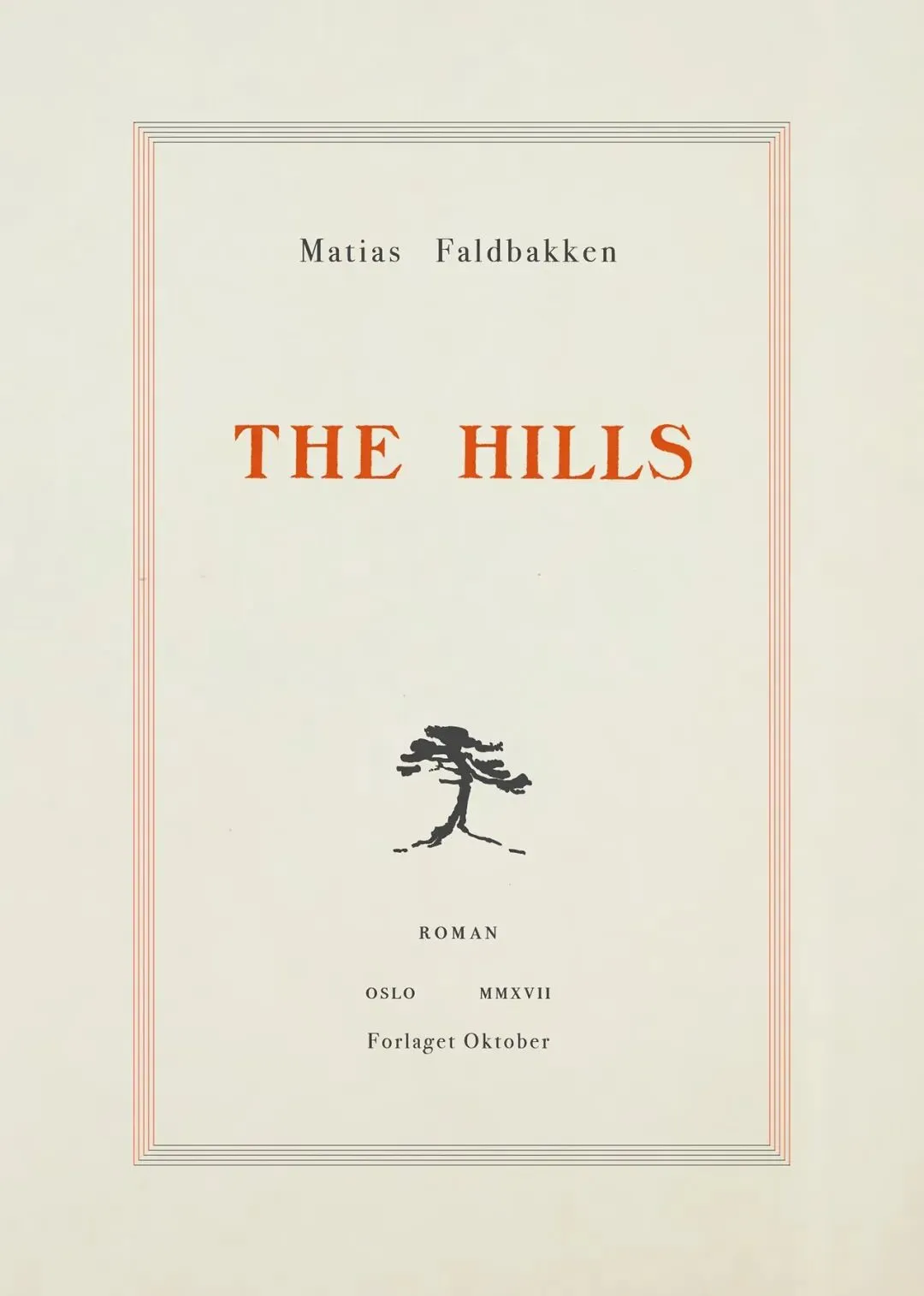 马蒂亚斯·法尔德巴肯(Matias Faldbakken),《山丘之上》(The Hills),伦敦:哈维尔·塞克出版社(Harvill Secker),2018。原著出版于奥斯陆:十月出版社(Forlaget Oktober),2017。小说将叙事完全限定在一家虚构且等级森严的奥斯陆老派餐厅内。侍者、食客与封闭的空间构成了一个微观的社会剧场。