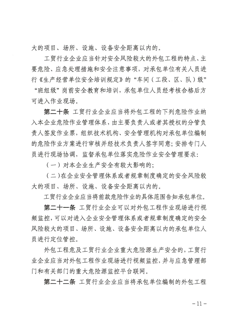 外包工程作业现场实现视频监控全覆盖,危及重大危险源安全的作业现场,监控需接入应急管理部门相关平台,实现实时监管。