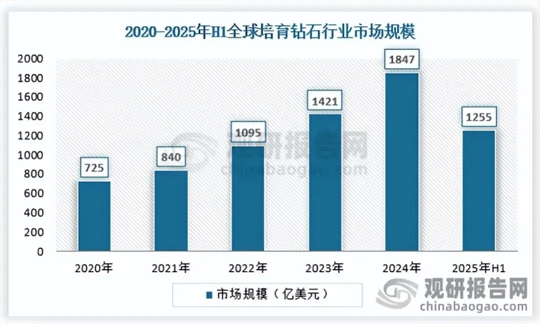 1、2021-2025年华南地区培育钻石行业市场规模