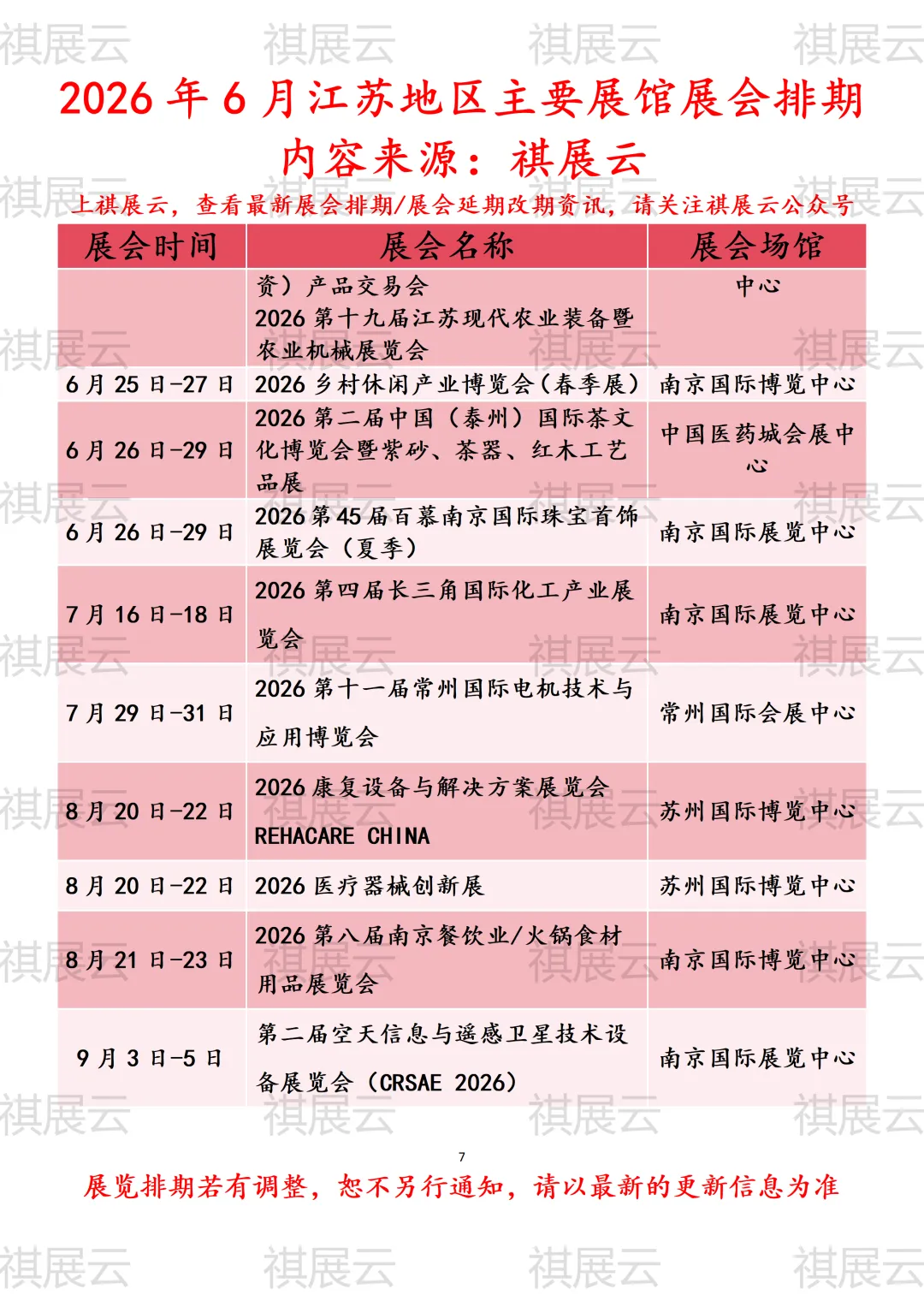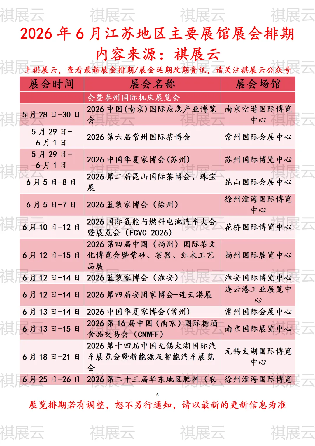 会展资讯丨江苏地区(南京、苏州、常州、徐州、昆山、无锡、扬州、泰州)主要展馆2026年6月时间表