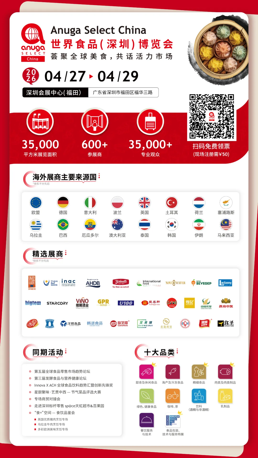 Anuga Select China 2026 世界食品(深圳)博览会将汇聚全球30多个国家和地区的逾600家优质展商,覆盖十大核心食品品类。目前观众预登记已进入倒计时阶段,专业人士请尽快完成线上注册,锁定免费入场资格。
