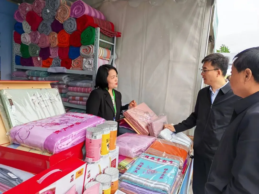 展位上,三友土布的负责人正向前来视察的领导与客商介绍产品特色,现场互动氛围热烈。不少领导对三友土布的非遗传承理念与产品品质给予高度评价,鼓励品牌继续深耕传统技艺,结合市场需求创新发展,让老手艺焕发新生机。