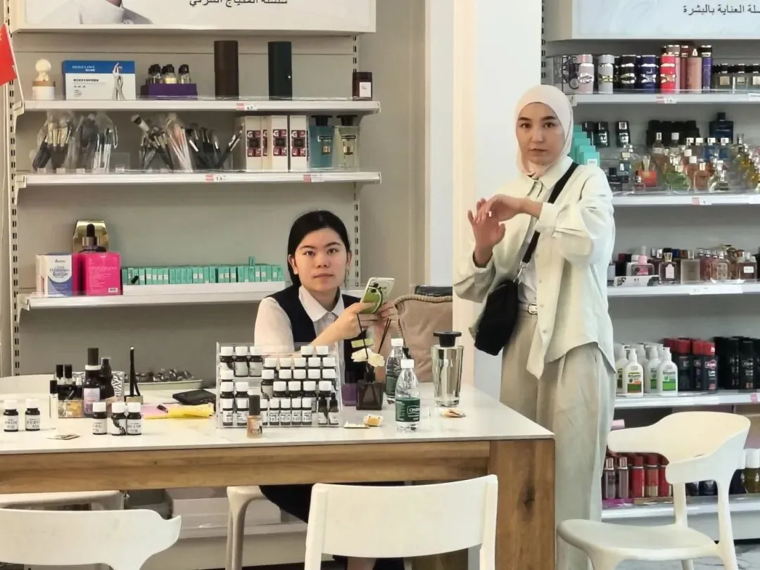 在外贸馆内,工作人员不仅为国际客商提供标准、专业的外语产品讲解服务,还量身定制外贸解决方案——从设计需求到市场分析,从报关清关到品牌推广,全方位助力国货出海。