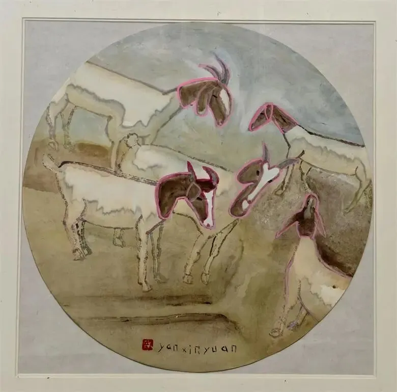 五羊相聚、33x32cm、纸本水墨、2016