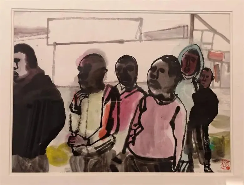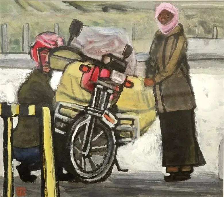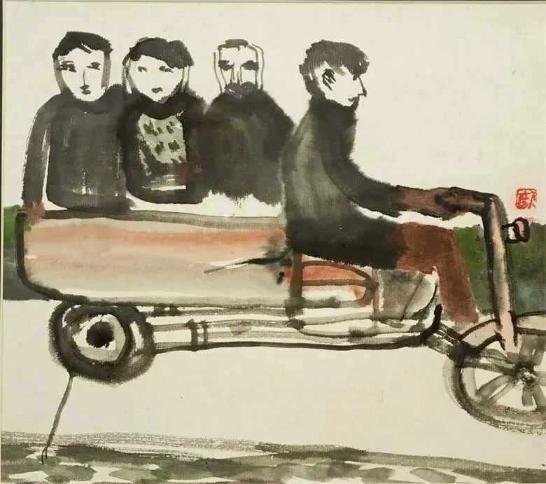 中国传统水墨中,容易用“气韵生动”与“形神兼备”的第一感官来强调作品,而艺术家颜新元的作品更倾向于个人情感的抒发。熟知的艺术家颜新元是一位观察灵敏、捕捉角度“特别“的人。这批作品,他大胆弱化了学院派造型,转用粗犷、自由的线条和块面来概括形体。无论是羊群、三轮车上的乘客,还是街头的任何事物,在他这里,都会带有一种速写式的生动与即兴。这种表达,不仅保留了水墨的书写性,也赋予了画面强烈的现代构成感。