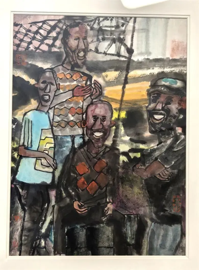 非洲路人之一、46x35cm、纸本水墨、2014