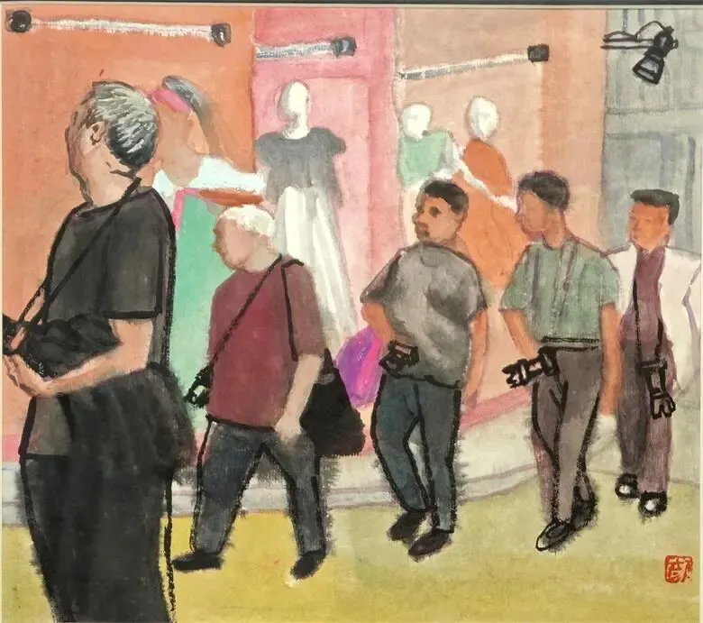观光客、23x26cm、纸本水墨、2016