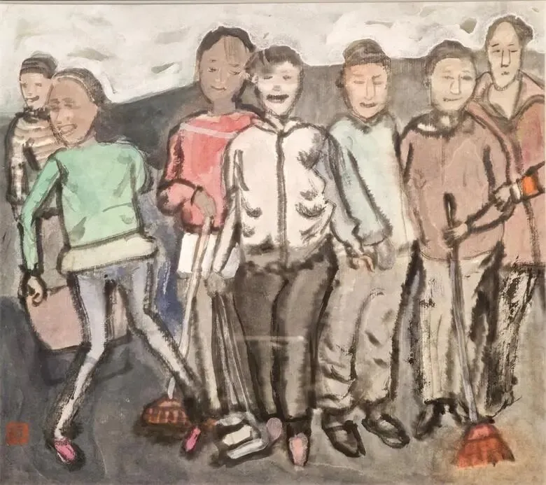 艺术家颜新元作品多取材于生活记忆或日常的街头瞬间。如《合影》、《一路上不害怕》,这些题材虽然“随处可见”,但艺术家的表达让我感觉得到承载着浓厚的时代气息和人文温度。他没有刻意美化对象,而是通过略带变形和夸张的造型,传递出一种真实、质朴甚至略带荒诞的生活质感。