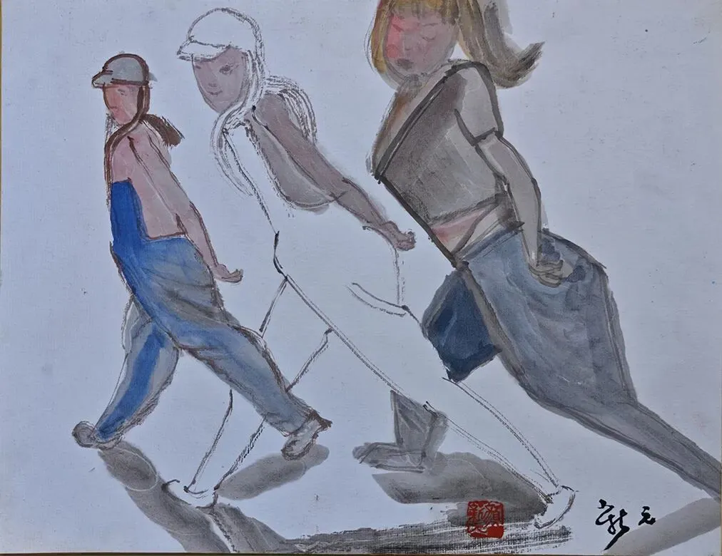 搭便车、23x26cm、纸本水墨、2016