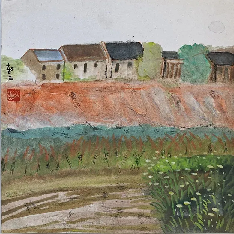 一路红泥、38x38cm、纸本水墨、2023