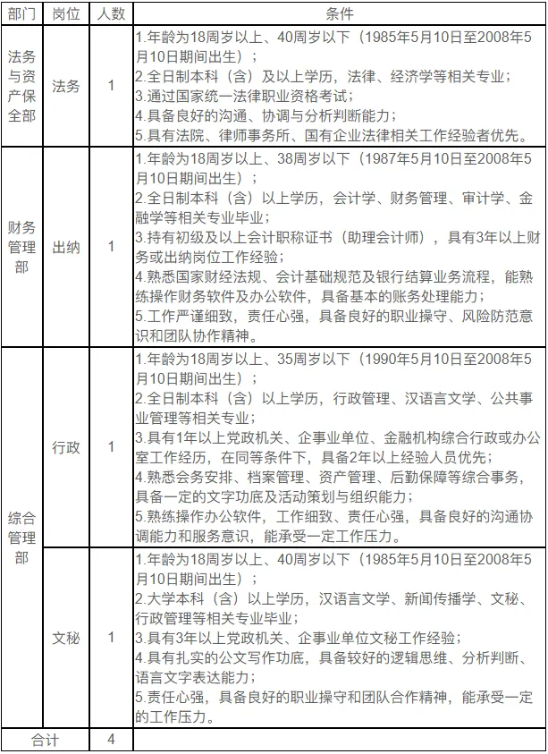 3.符合岗位任职条件,具备岗位要求的业务素质和工作能力,能够胜任本职工作;