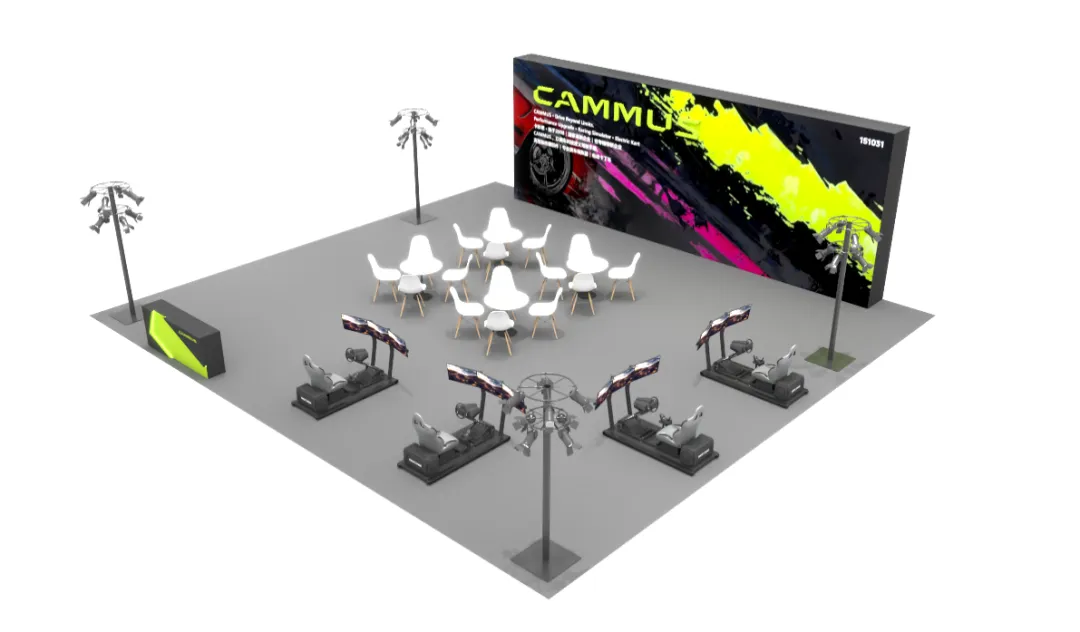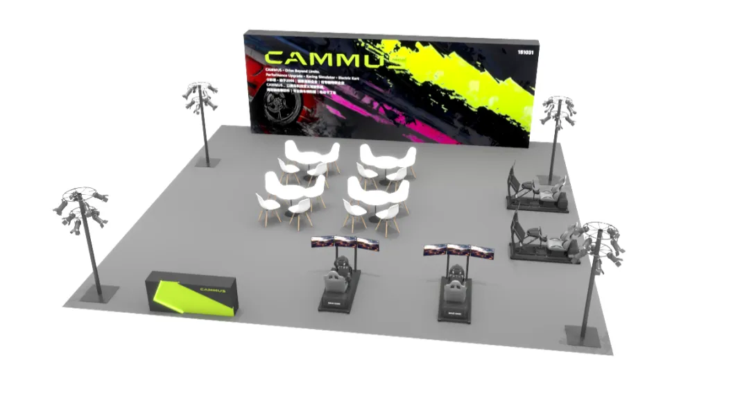 四周高空定点灯组科学排布,明暗层次分明,精准烘托空间质感,凸显展品细节。依托兰晟全流程施工管控与精细化搭建标准,展台实现设计方案 1:1 实景还原,造型结构、点位排布等全部对标设计图纸,零偏差落地呈现。