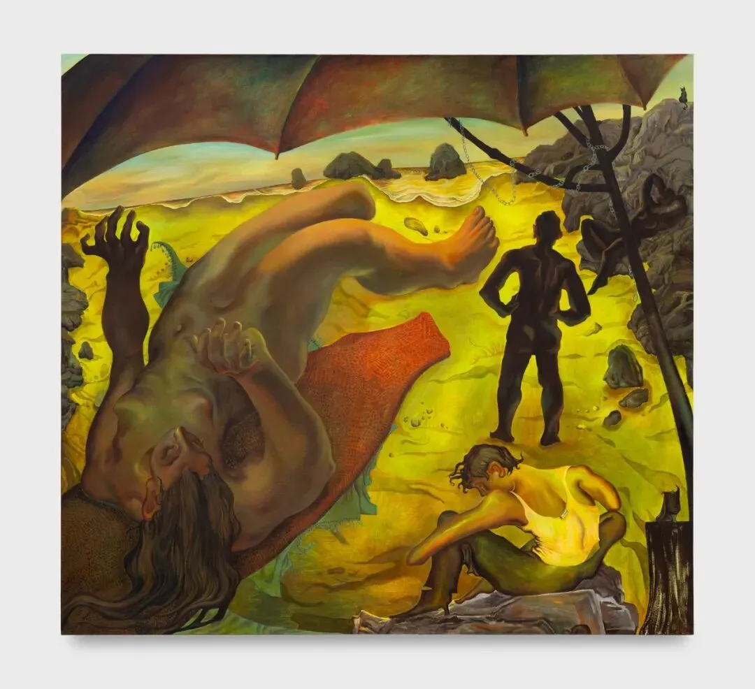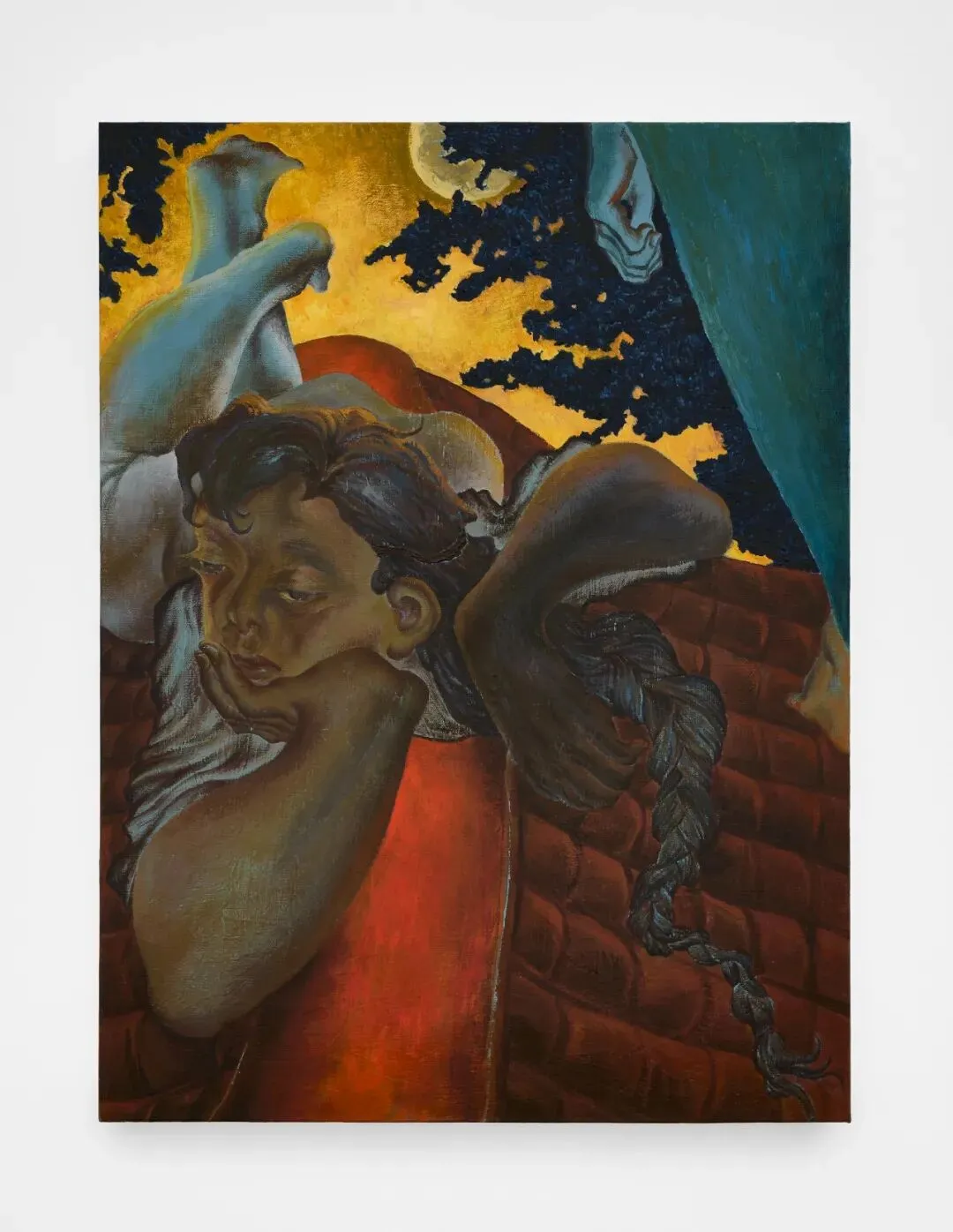 如果说郑芝琳以往作品中翻涌流动的韵律、戏剧性的光线和流动而轻盈的身体像一幕舞台剧,此次展出的新作,则更像一段缓缓延展的长镜头,捕捉着微妙细腻的具身经验。在展览中心的大画幅的作品《雨后尘土的气息》中人物肢体舒展,剪影有如马蒂斯剪纸人物。像标题中提到的嗅觉线索一样,这些趋于静止的人物仿佛充满了敏锐的感受力:每一寸皮肤、每一块肌肉都好像在接收、体察那些稍纵即逝的知觉。(节选)