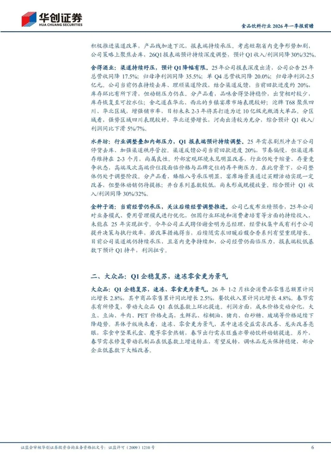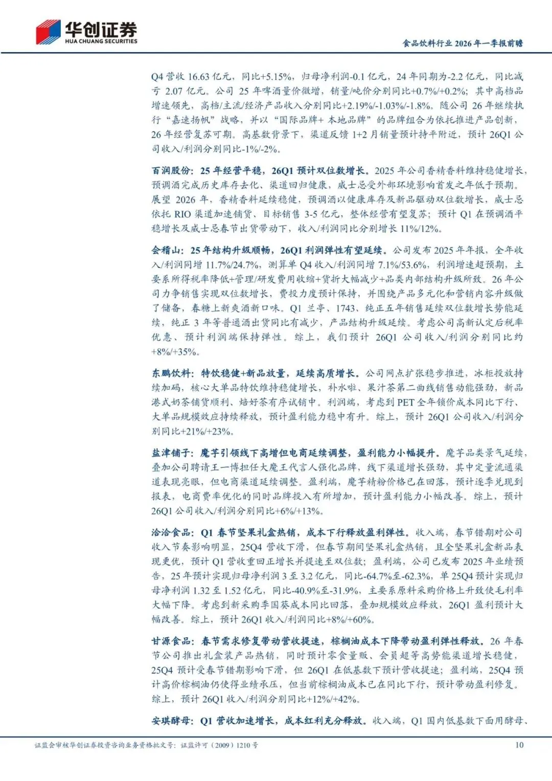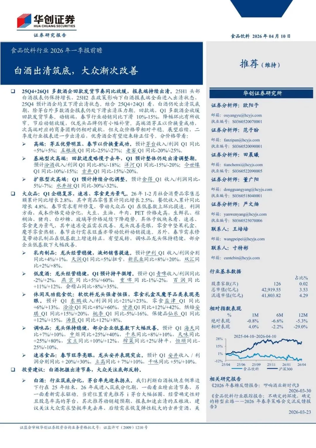 回复暗号:食品饮料行业2026年一季报前瞻:白酒出清筑底,大众渐次改善-260410-华创证券-16页