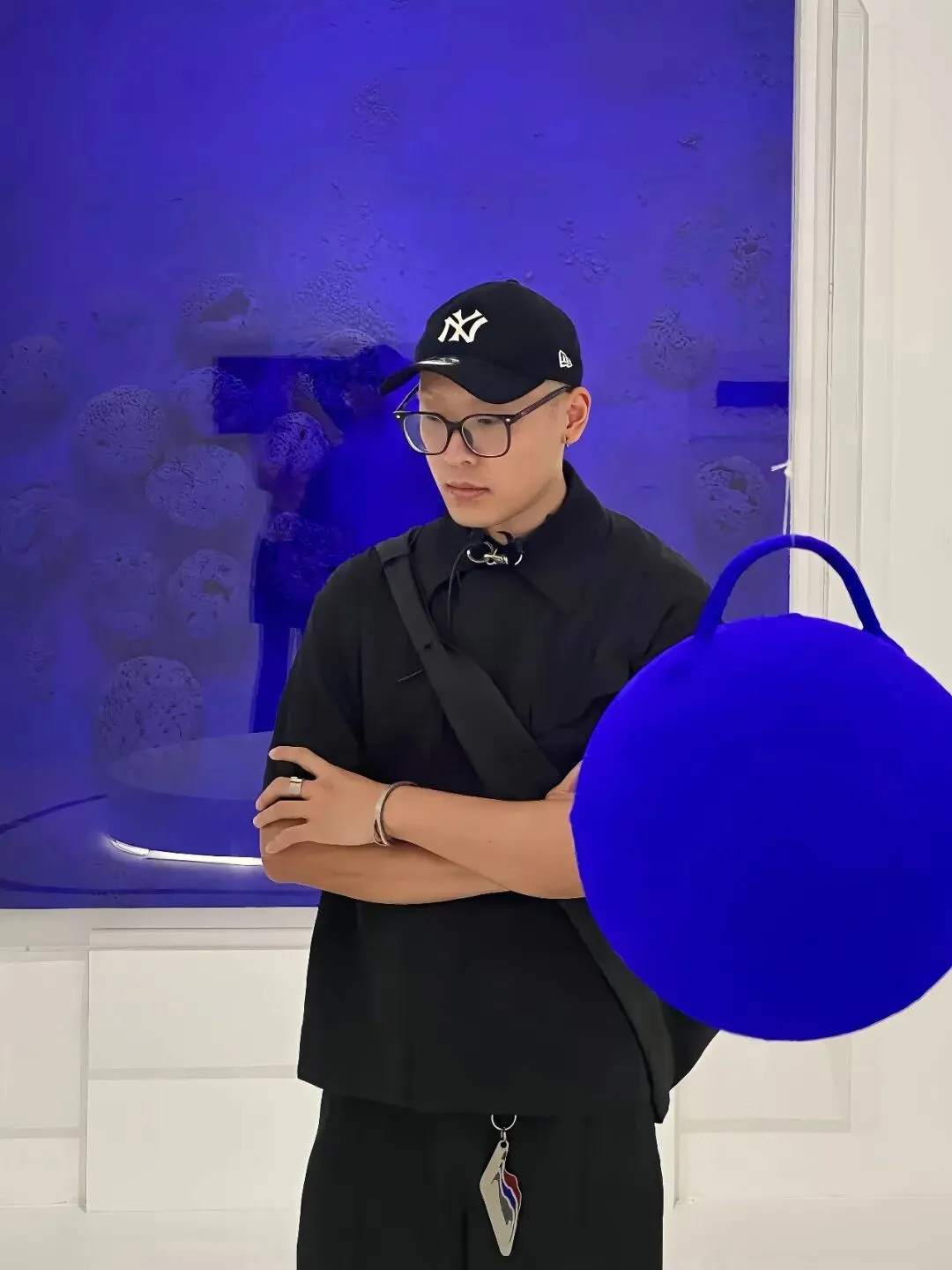 那一抹蓝,日后被反复确认为精神结构的原点。2021年《只在世界尽头》完成之后,蓝色从调色盘上的选项,生长为一种与身体、生命共振的视觉存在。层层覆盖,等待干透,再覆盖,他保留过程中的意外痕迹,将时间锻造成蓝色可见的微妙变化。三连音连绵不绝,寂静被缓缓推进,结局被无限悬置,蓝色铺开一片水域,观者自行决定凝视多久。这是幽蓝的序曲,一切尚未开始,一切已经就位。