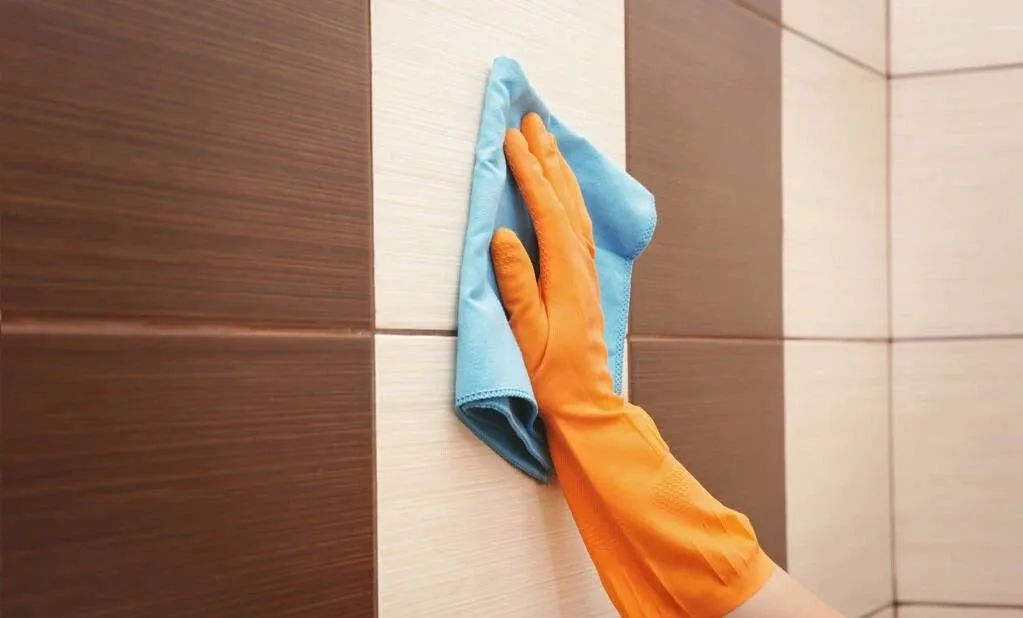 同样的方法我们在污渍处喷上溶液,然后用抹布进行擦拭,如果是积攒很久的污垢,我们可以等它溶解3分钟,再进行擦拭,效果基本上非常明显,