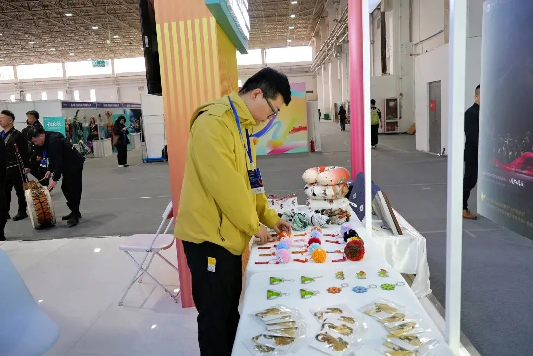 交易会期间,新媒体学院精选一批兼具创意性、文化性与市场潜力的文创产品集中展出,涵盖草原文化衍生文创等类别。作品深度融合现代新媒体技术与地方文化元素,既展现了学校师生扎实的专业创作水准,又精准贴合地方文旅市场需求,成为展会现场展现我校艺术办学特色的重要窗口。工作人员在现场主动为参观嘉宾、行业代表讲解文创产品的设计理念、文化内涵与创作过程,充分发挥新媒体传播优势,让文创成果更具感染力和传播力。