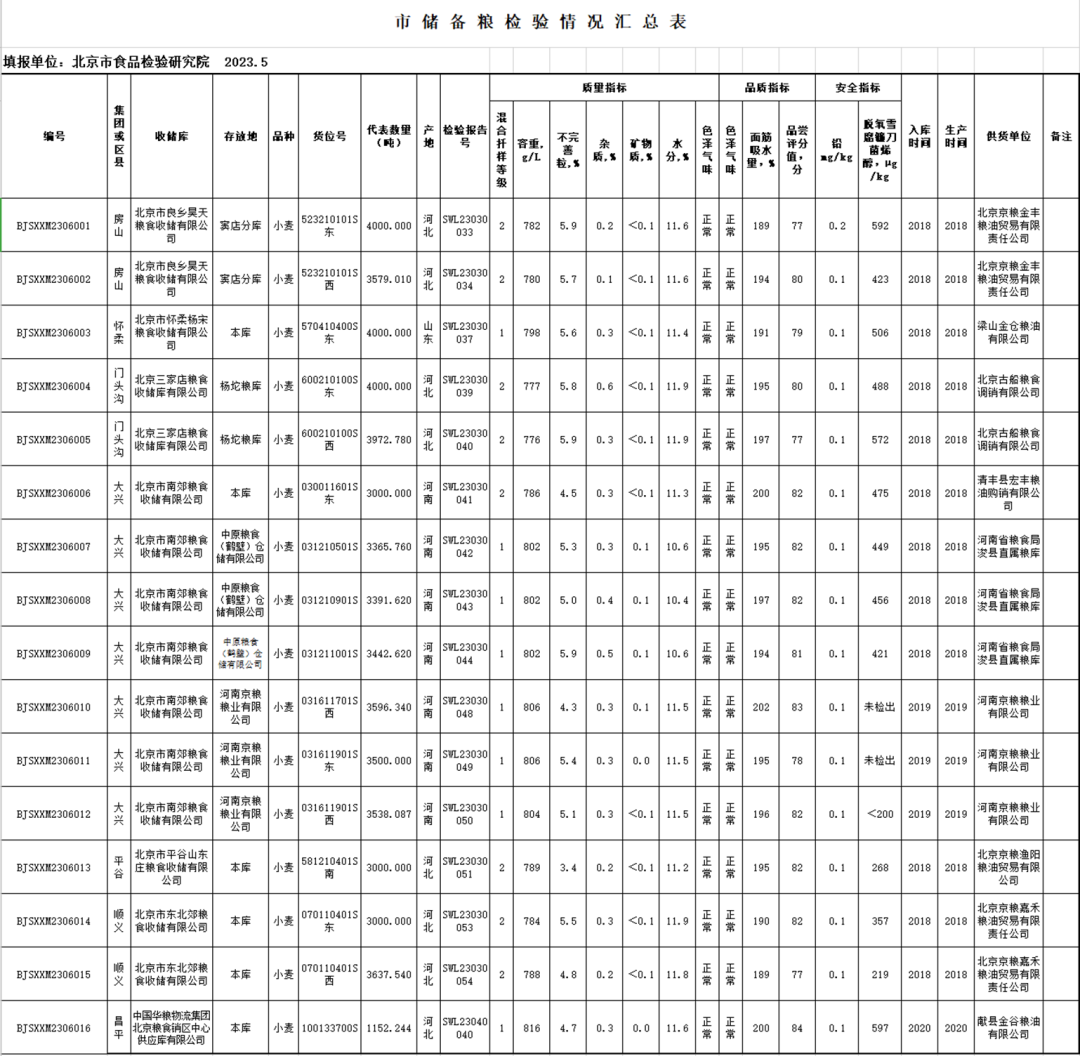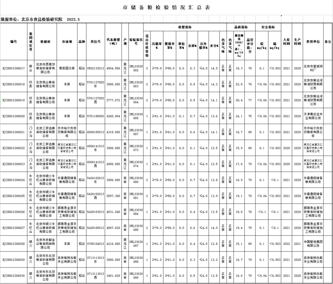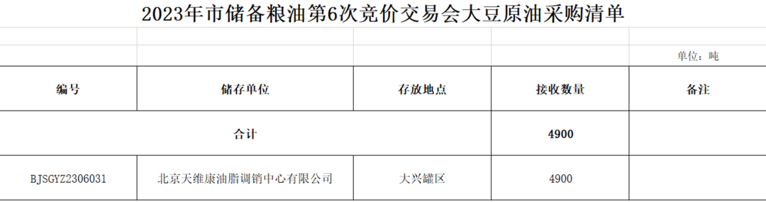 北京国家粮食交易中心2023年北京市储备粮油第六次竞价交易会交易清单
