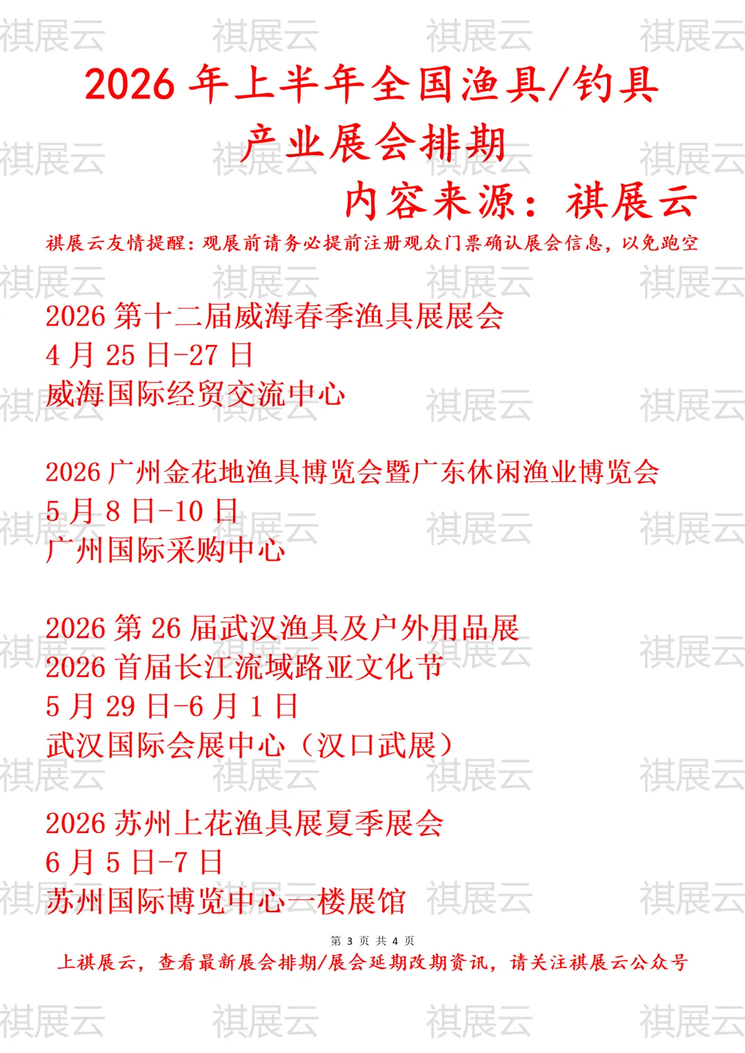 展会预告丨2026年上半年全国渔具钓具/钓鱼用品产业展会排期