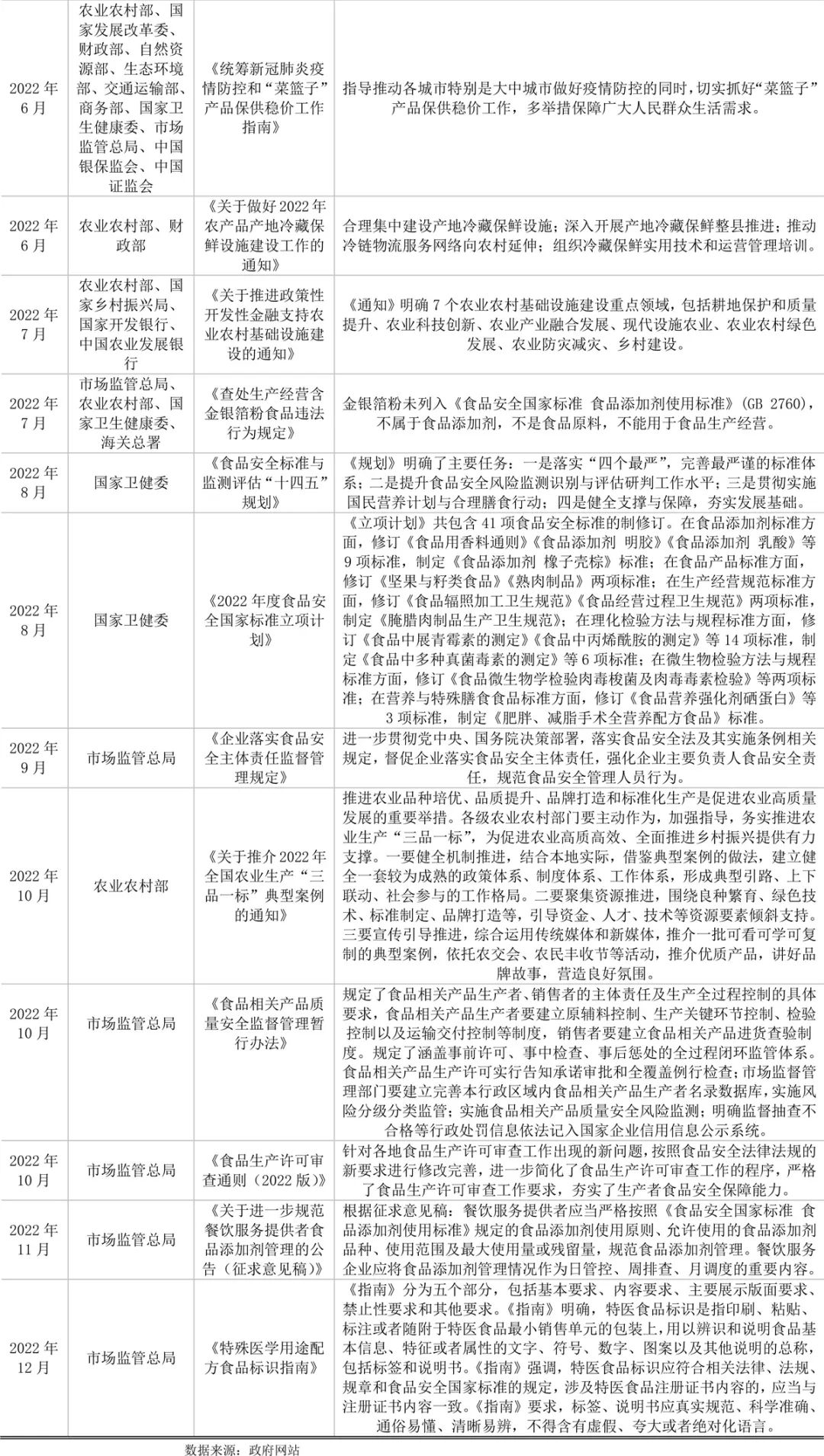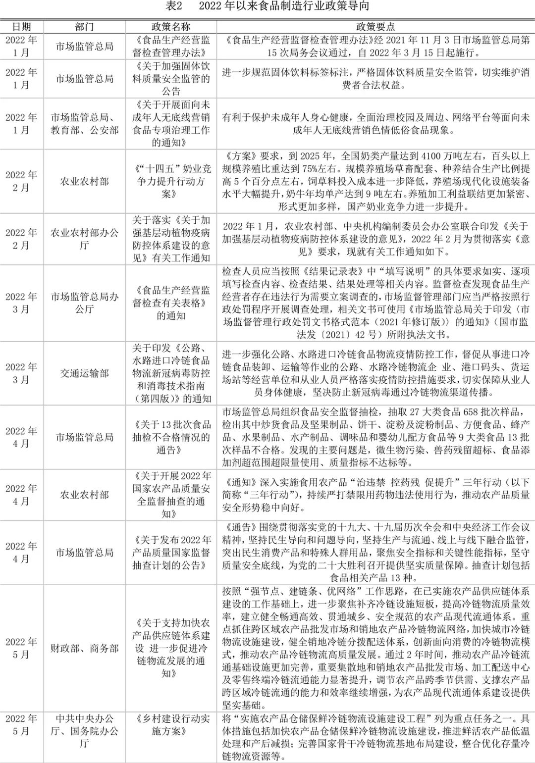 2022年,食品制造产业相关政策陆续出台,一方面引导行业走上更规范的轨道,一方面推动着产业高质量发展。其中,包括“十四五”相关的规划、方案,有瞄准万亿赛道“预制菜”的推进措施,有遏制“天价”月饼,限制食品盲盒的规范措施,有食品安全相关的,有反食品浪费的等等。