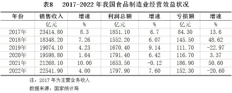 2022年1-12月,全国食品制造业销售收入、利润总额同比大幅提高,而亏损增速同比大幅下降,行业经营效益有所好转。