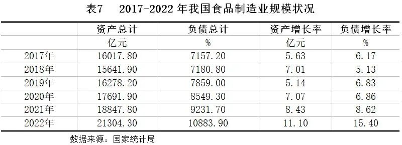截止2022年12月末,我国规模以上食品企业9119家,相比上年度增加623家;我国食品制造行业资产总额为21304.3亿元,同比增长11.1%;行业负债总额为10883.9亿元,同比增长15.4%。食品行业资产规模和负债规模同比呈现扩张态势。