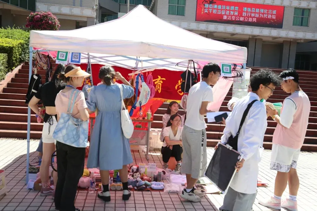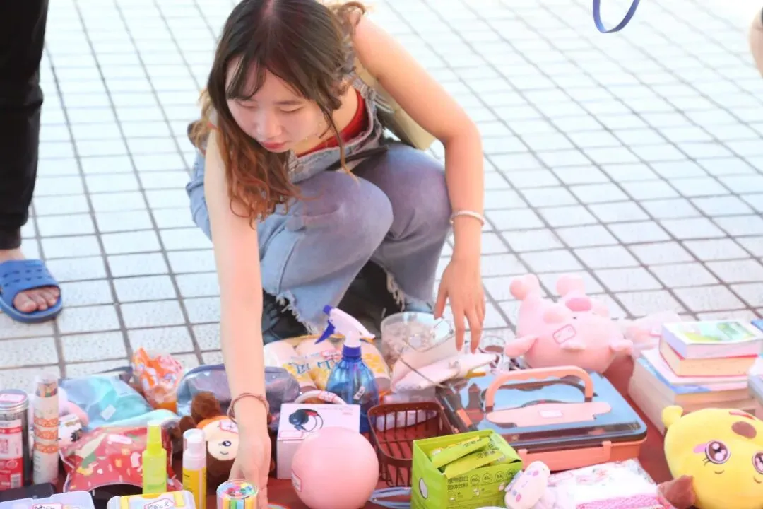 在西院北校区的中心广场,各二级学院的摊位上摆放着来自不同年级学生的旧物,种类繁多,吸引了来来往往的众多人群。